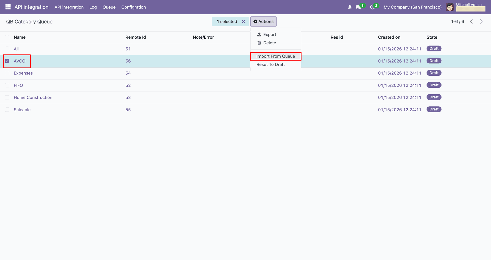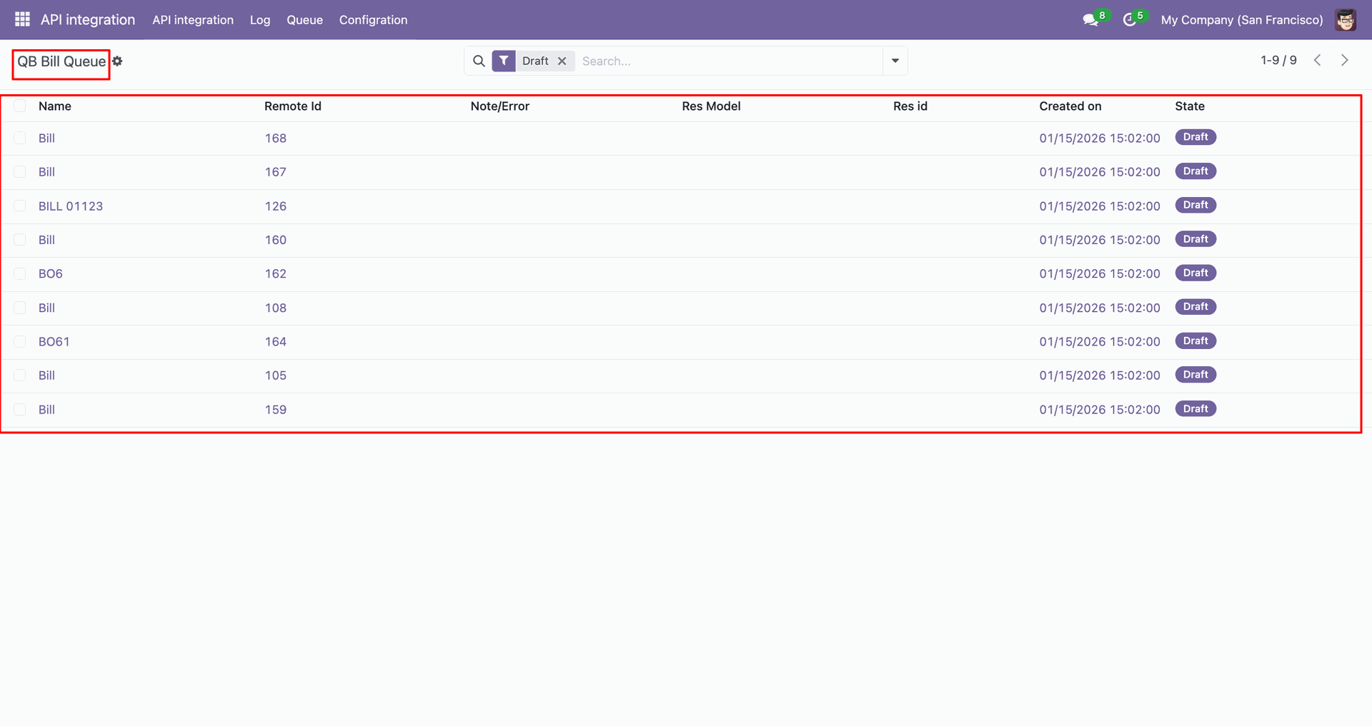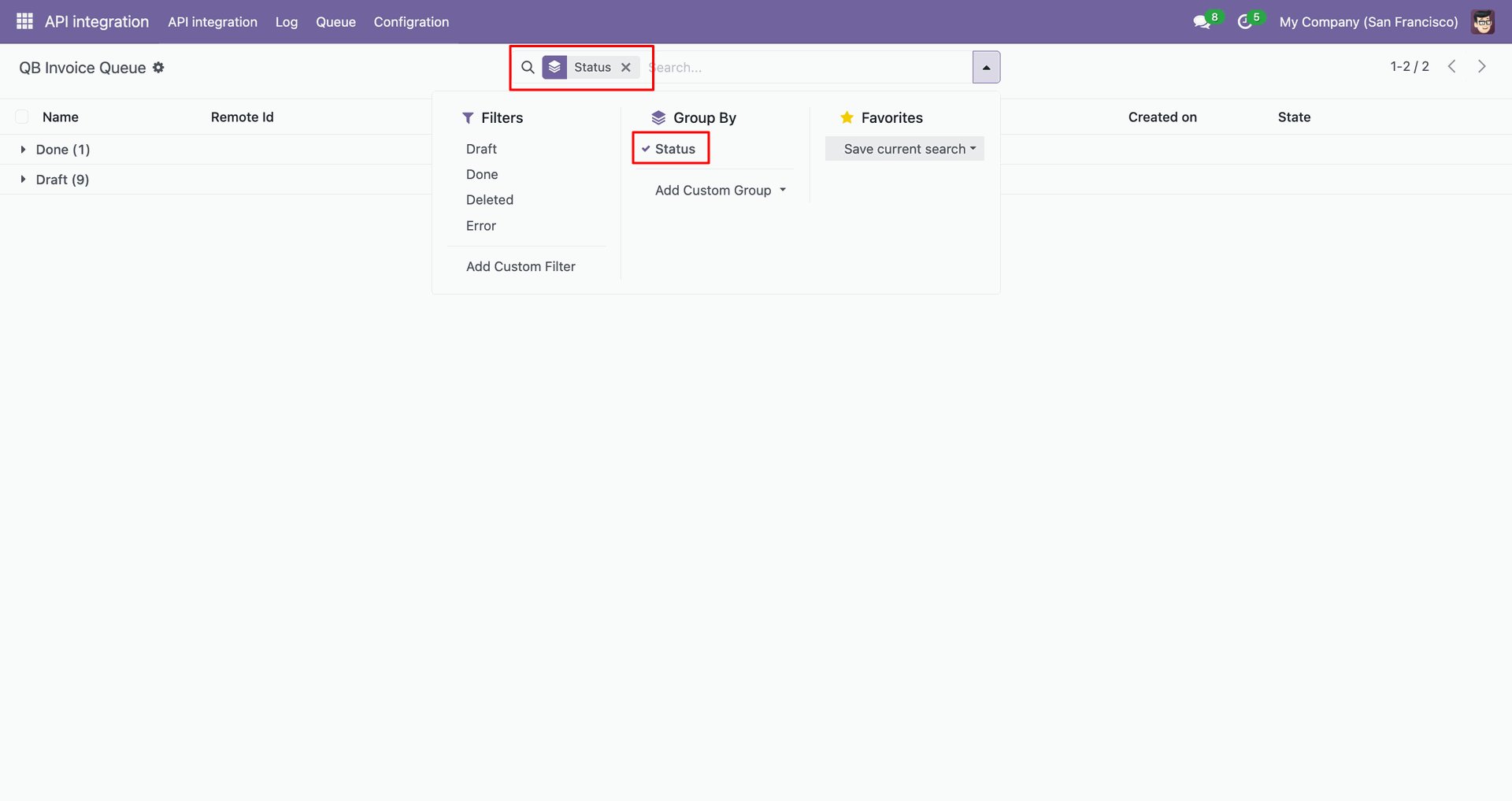 Go to the Queue, 'QB Invoice'.
