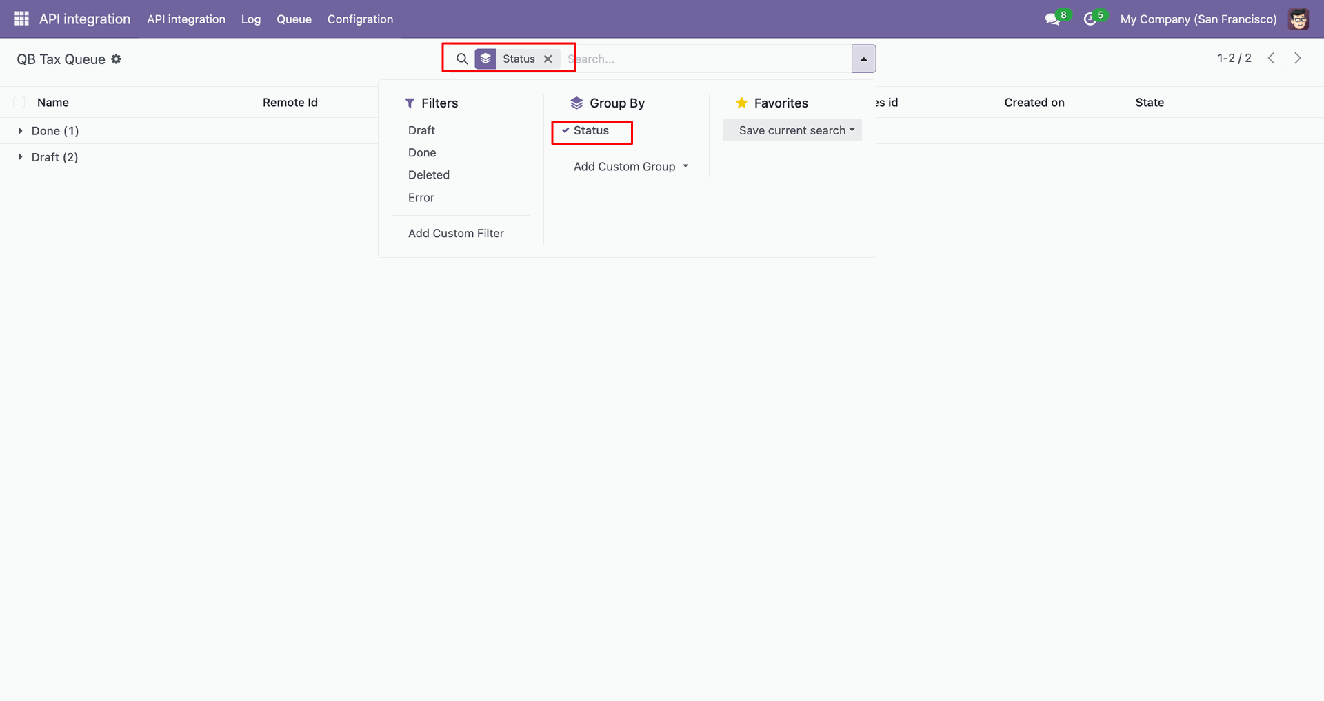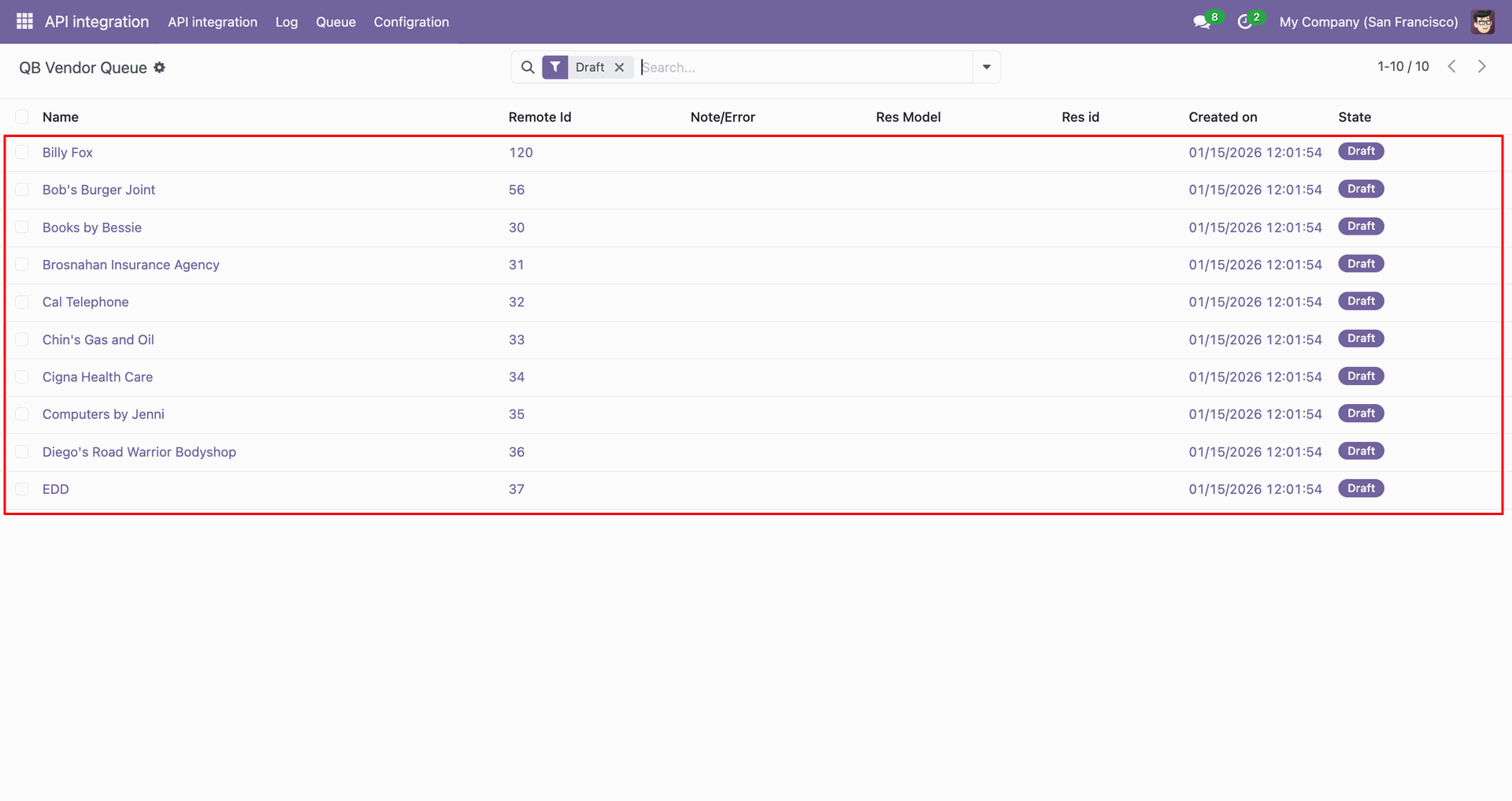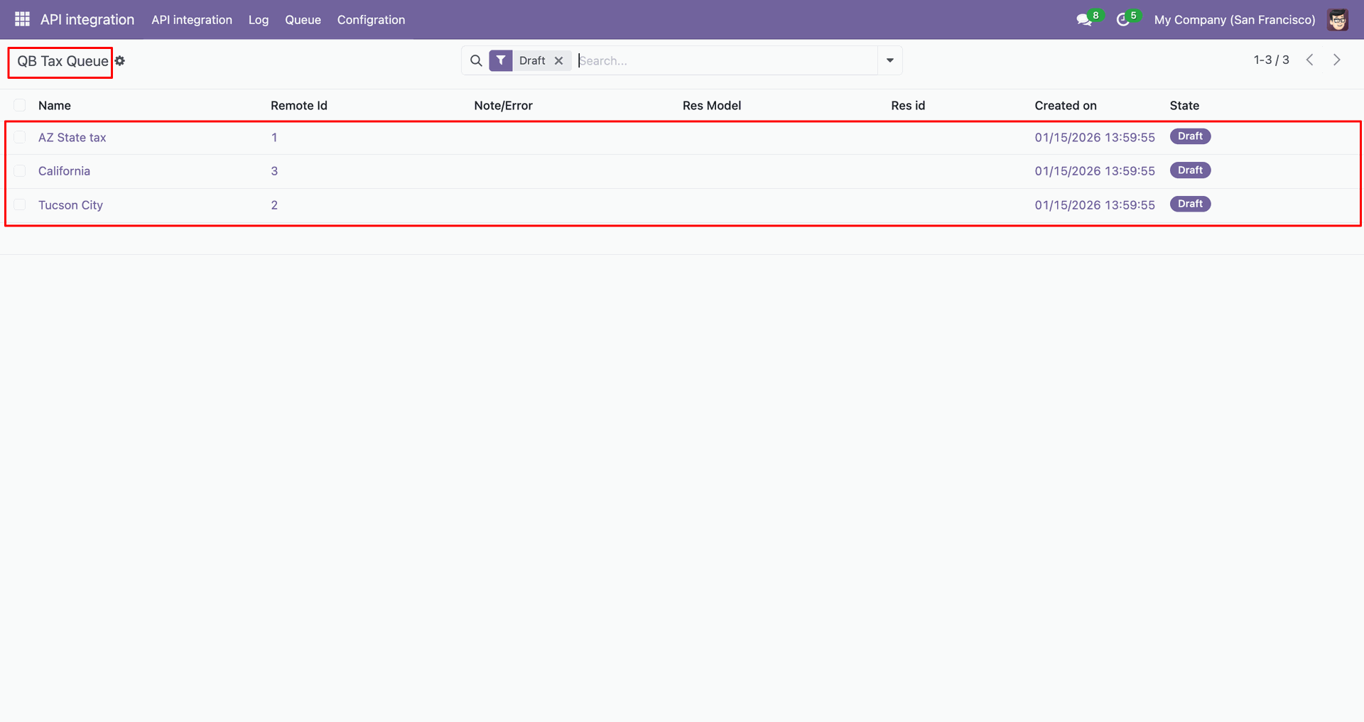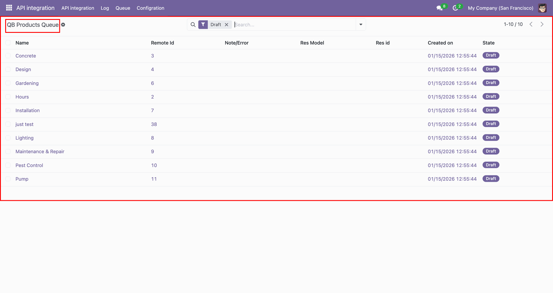 Go to the Queue, 'QB Invoice'.