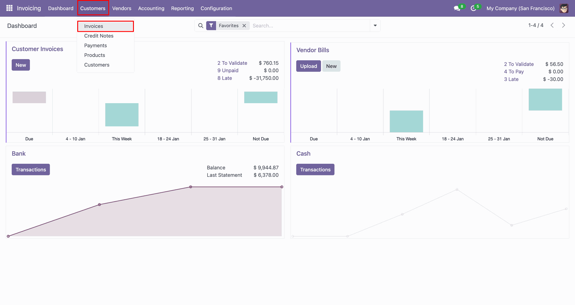 Go to the 'Customers', click 'Invoices'.