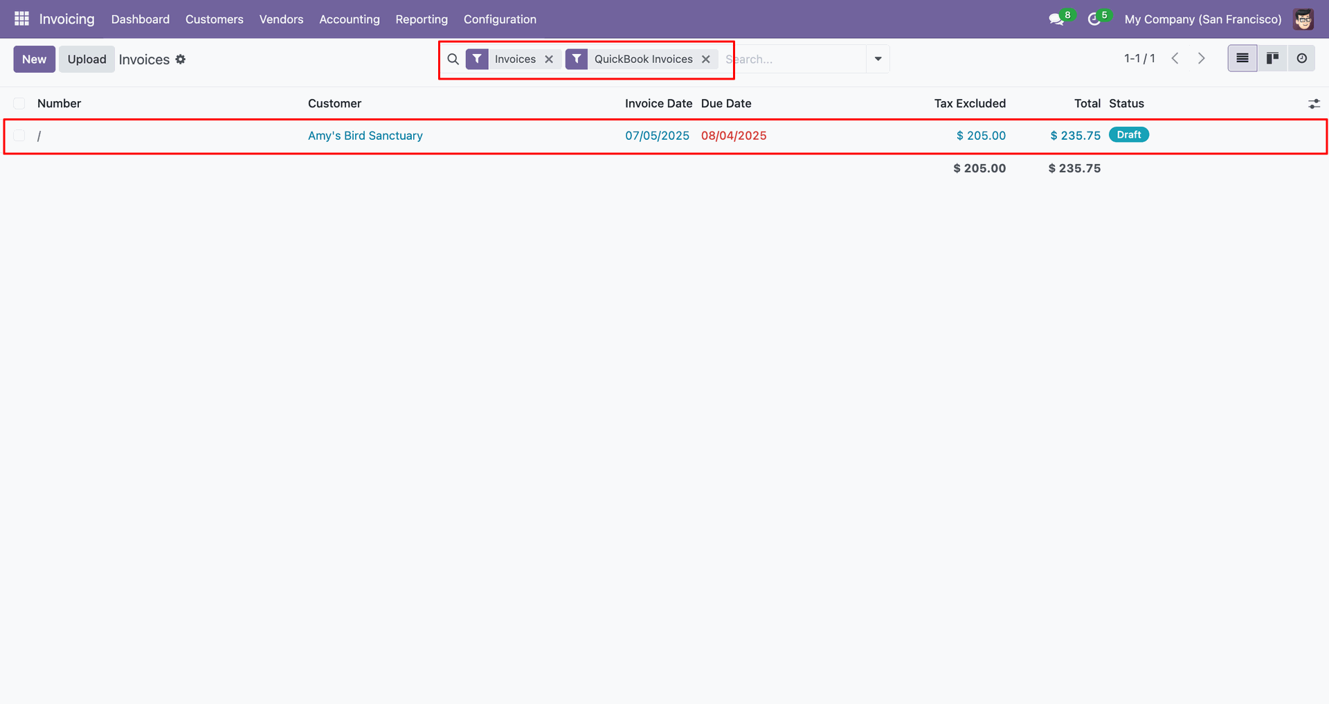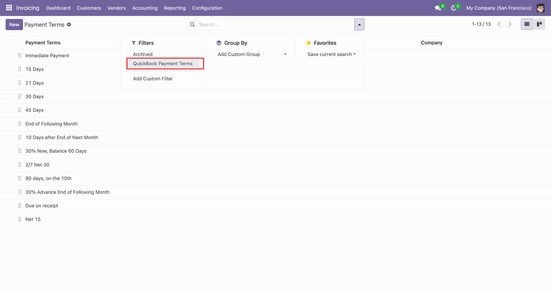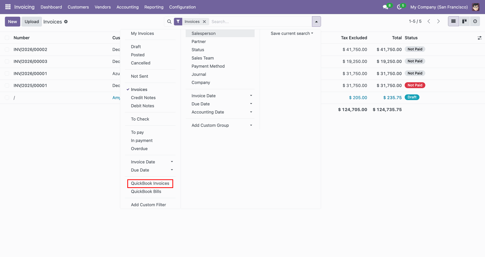Filter Quickbooks invoices.