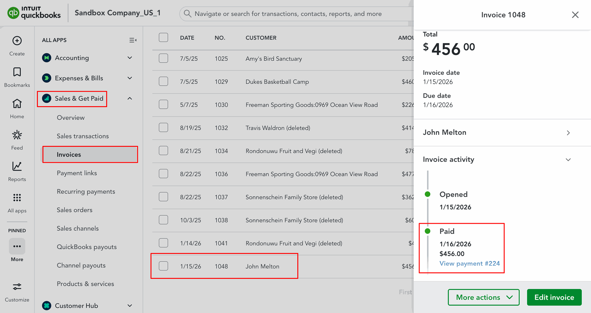 Invoices in QuickBooks.