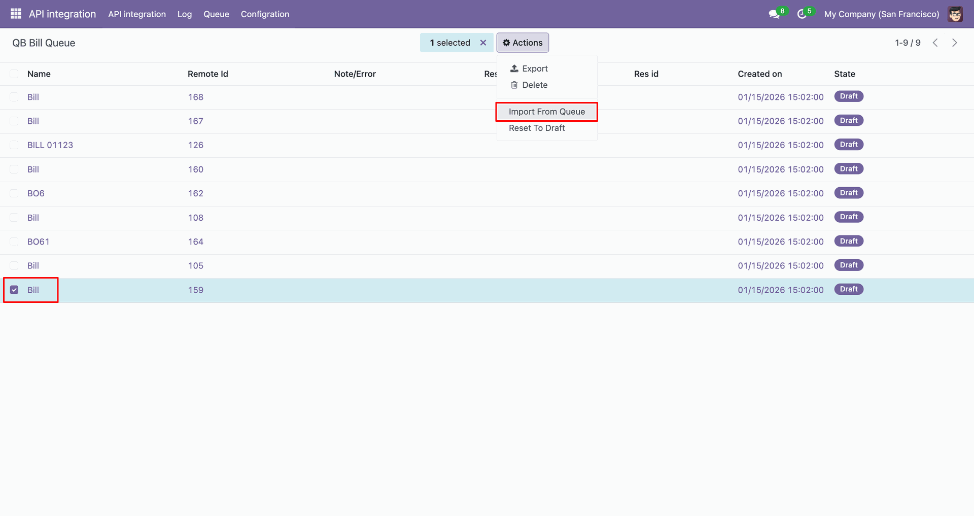 Go to the Queue, 'QB Bill'.