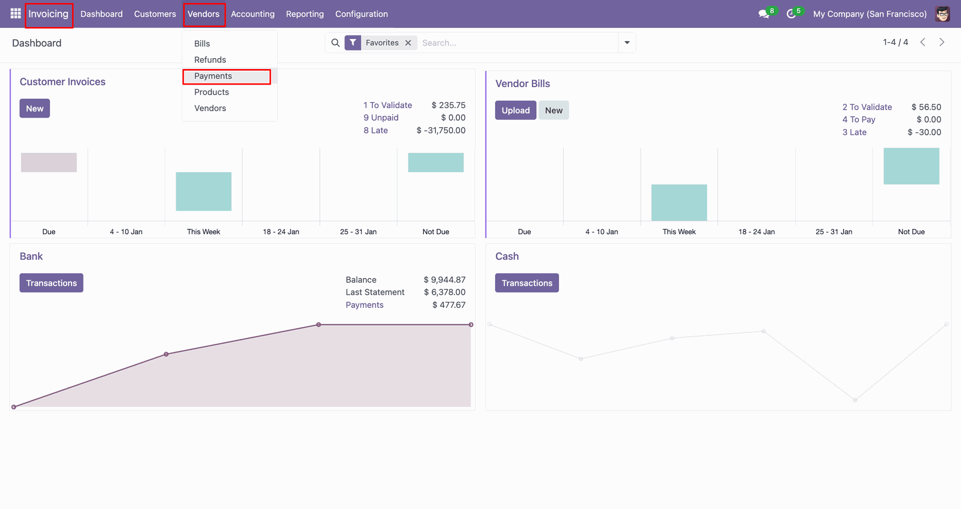 Go to the 'Vendors', click 'Payments'.