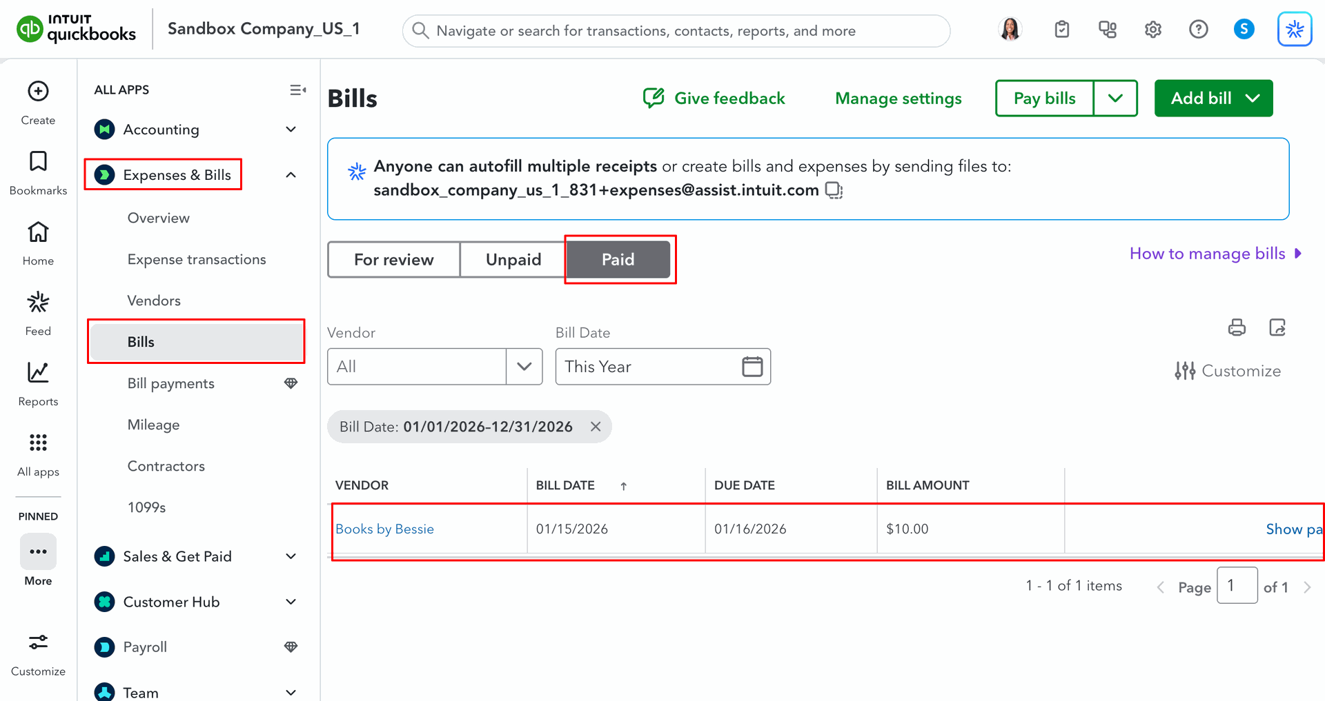 Go to the 'Vendors', click 'Bills'.