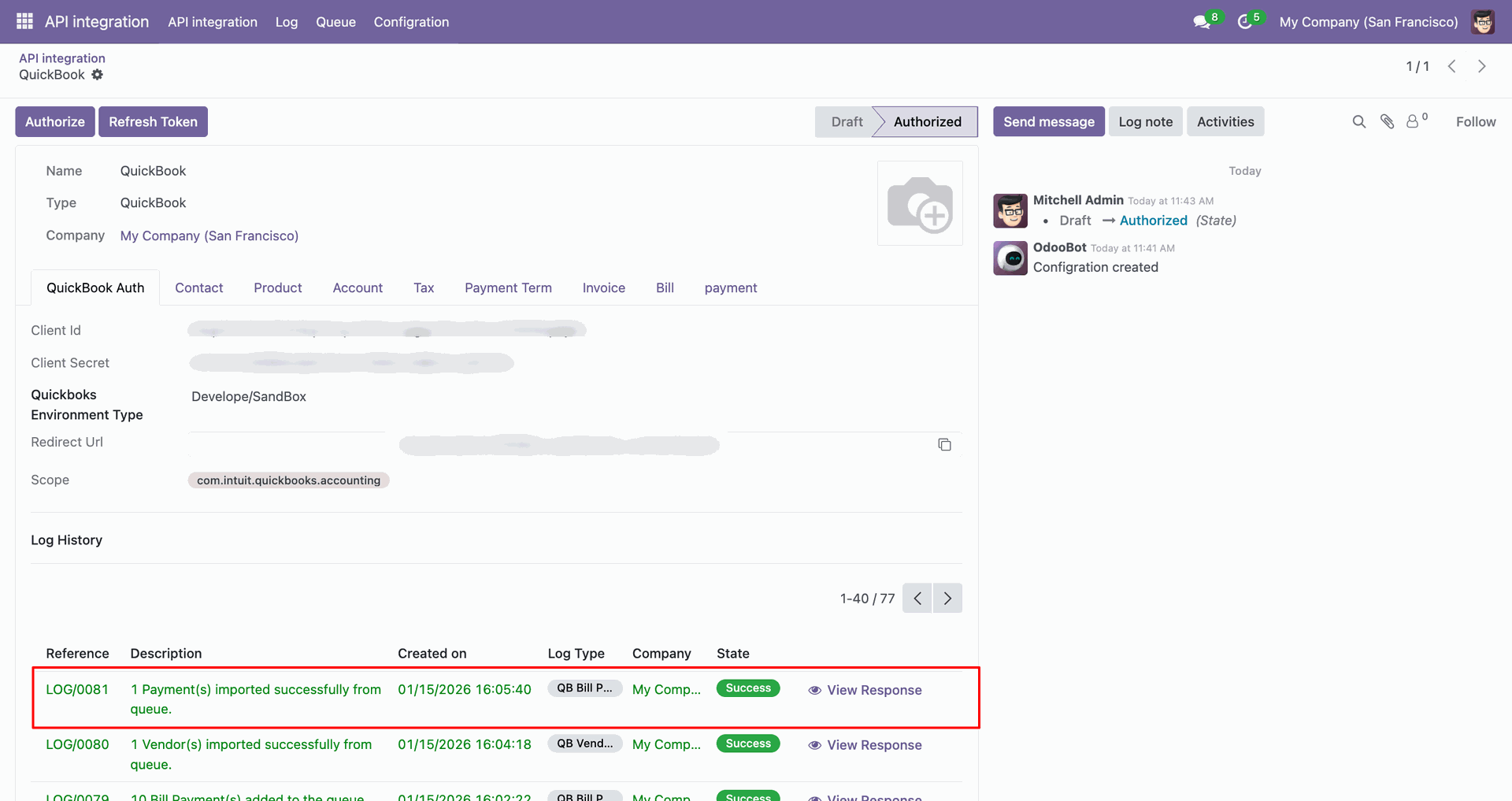 Odoo QuickBooks Connector