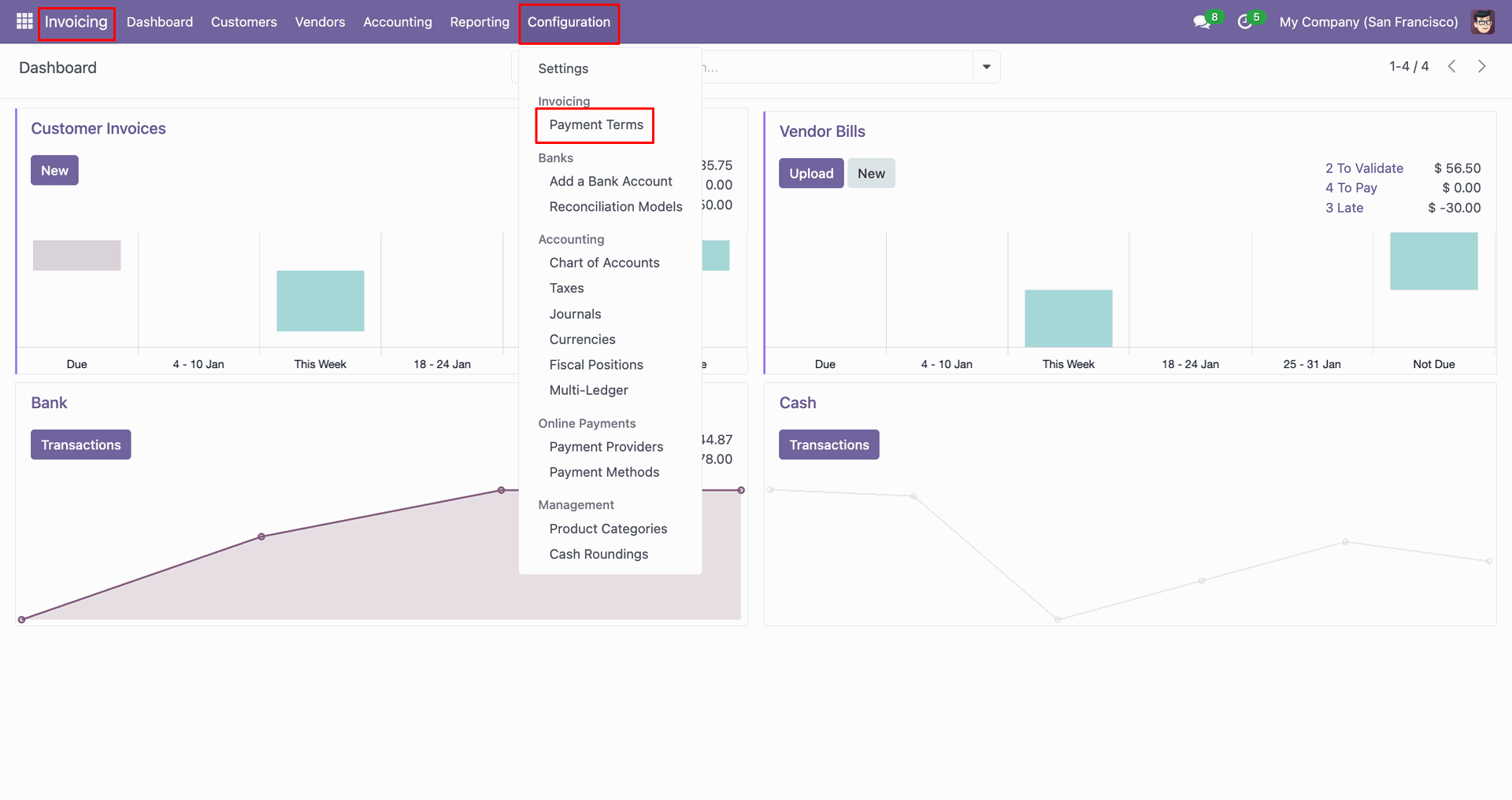Go to the 'Configuration', click 'Payment Terms'.
