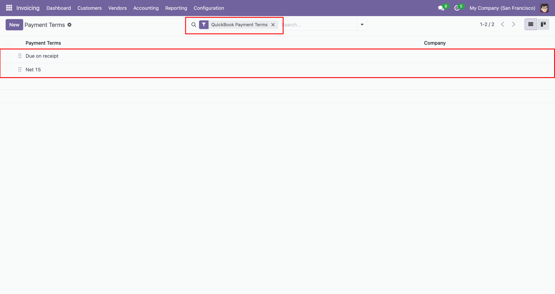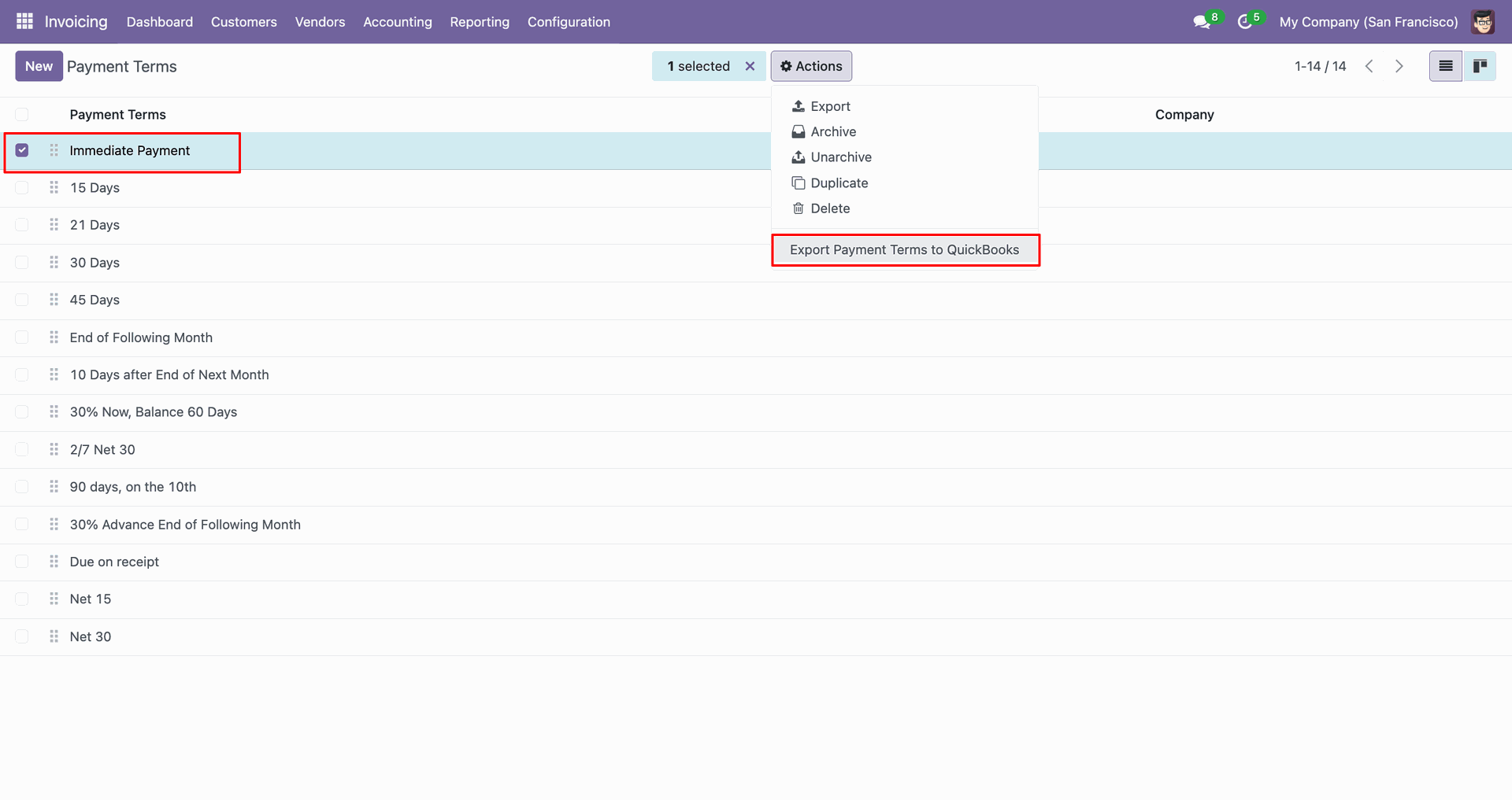 Payment terms in QuickBooks.