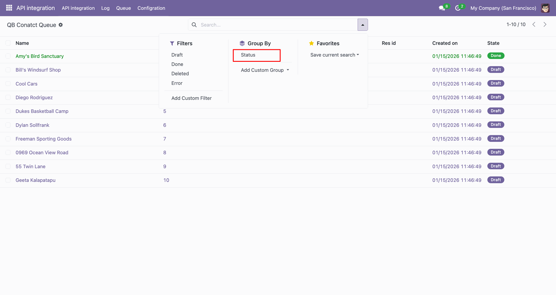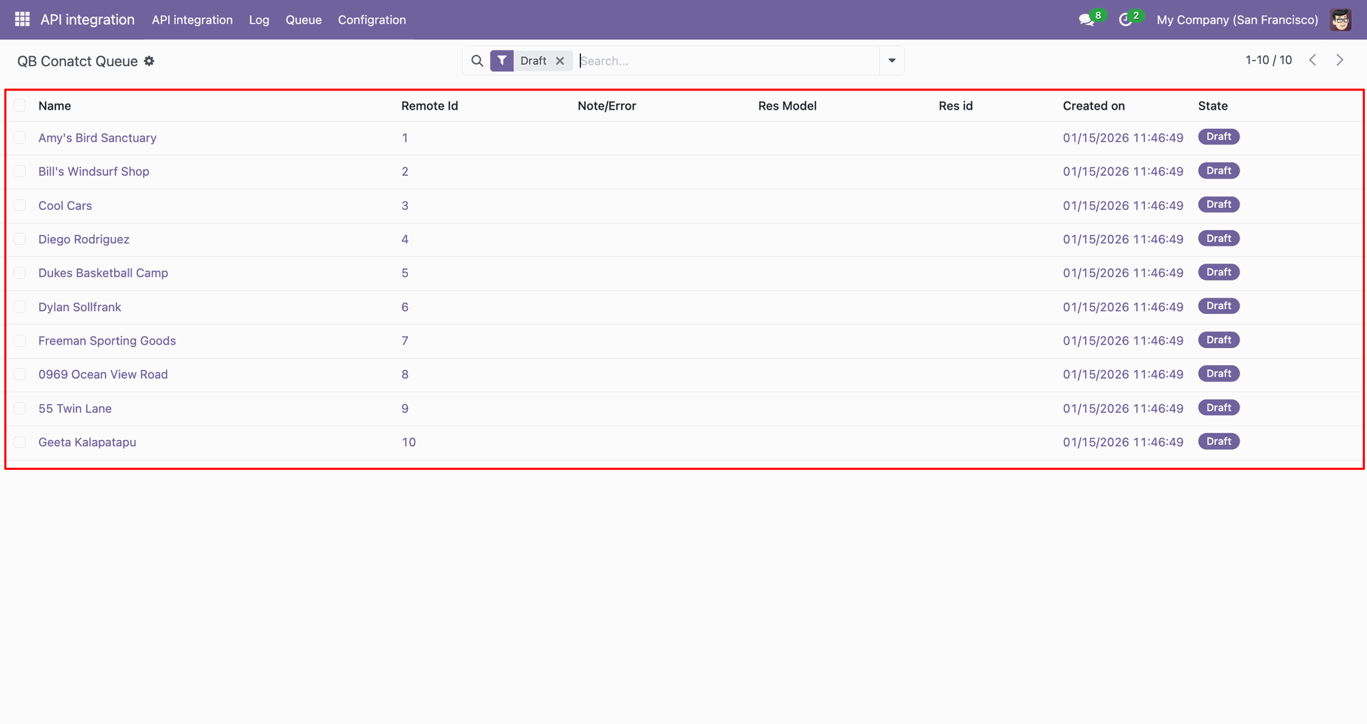 Go to the Queue, 'QB Contact'.