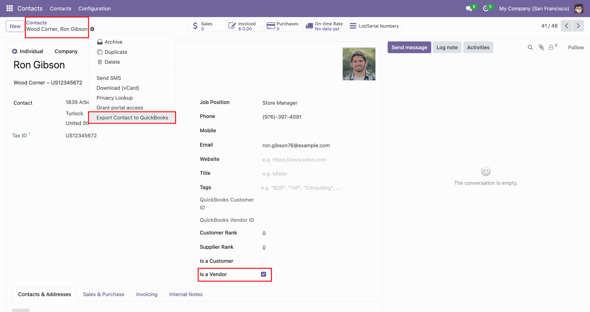 The form view contains Quickbook vendor ID.