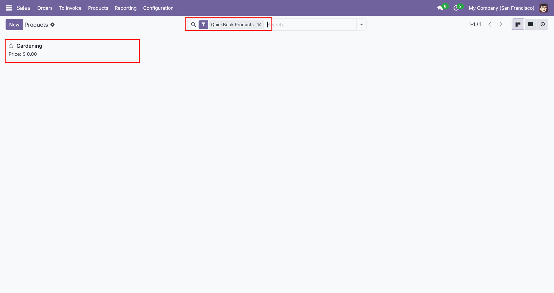 Products in QuickBooks.