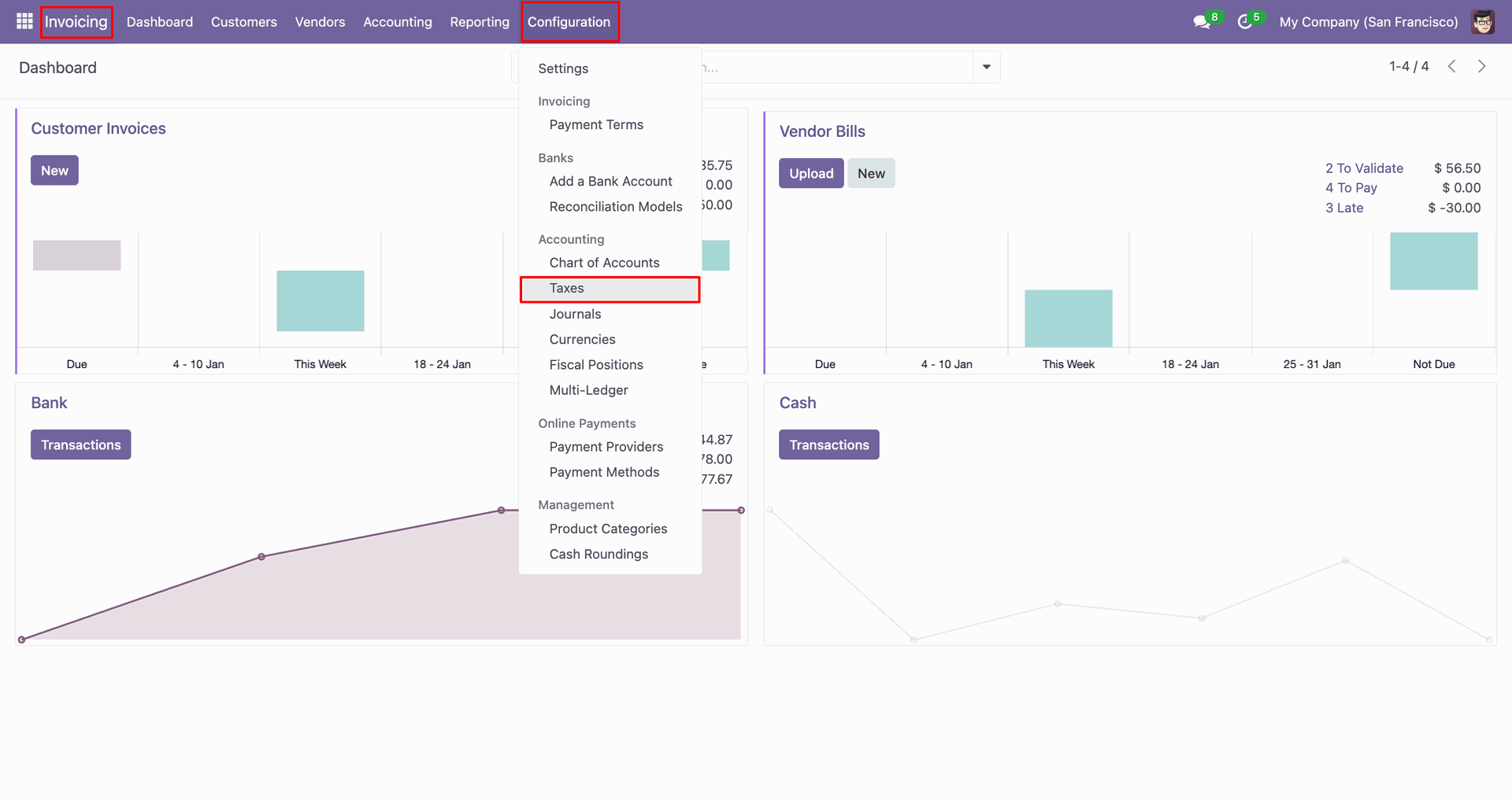 Go to the 'Configuration', click 'Taxes'.