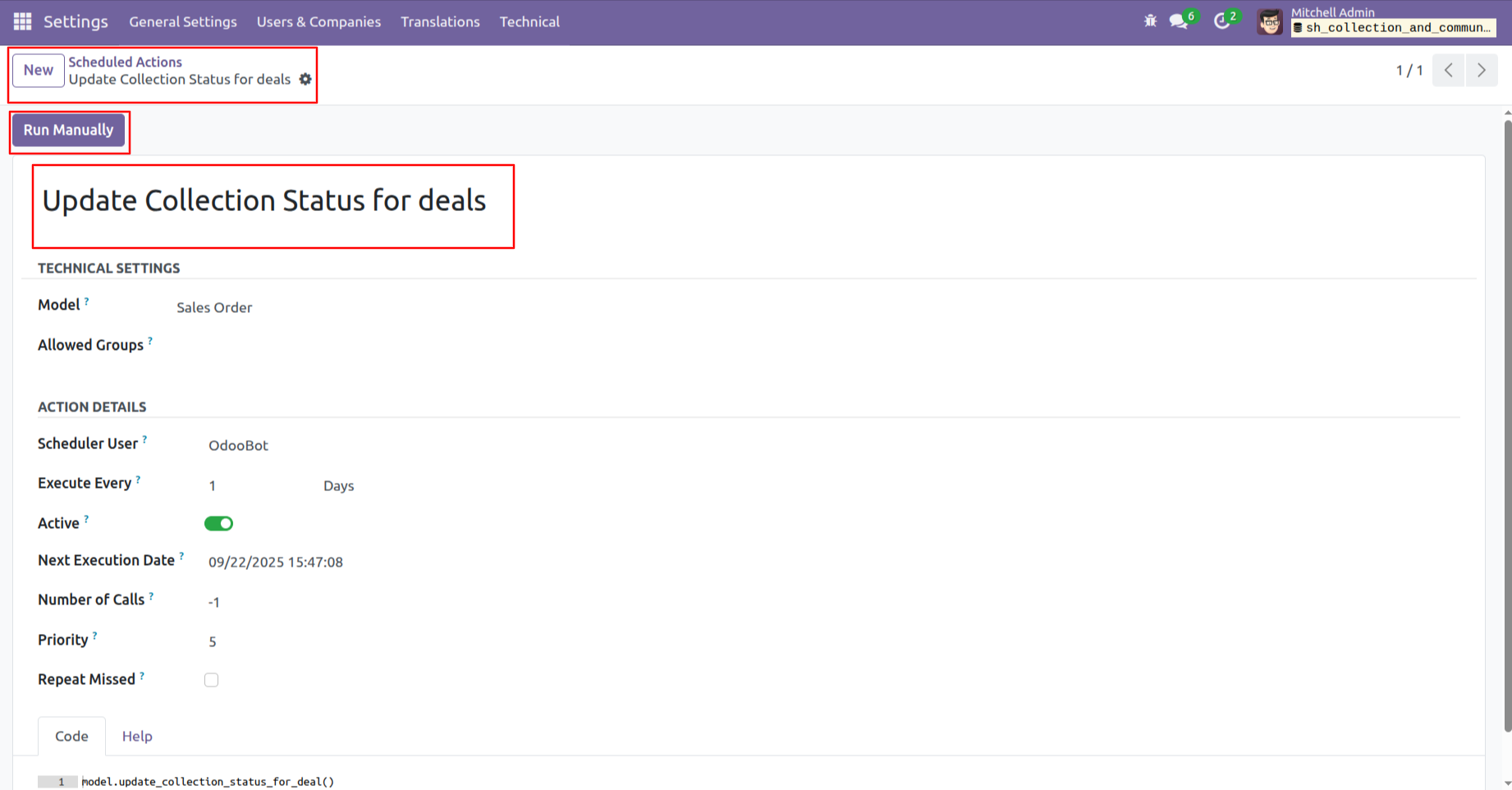 Allows users to refresh overdue risk and collection status manually on any sale order.