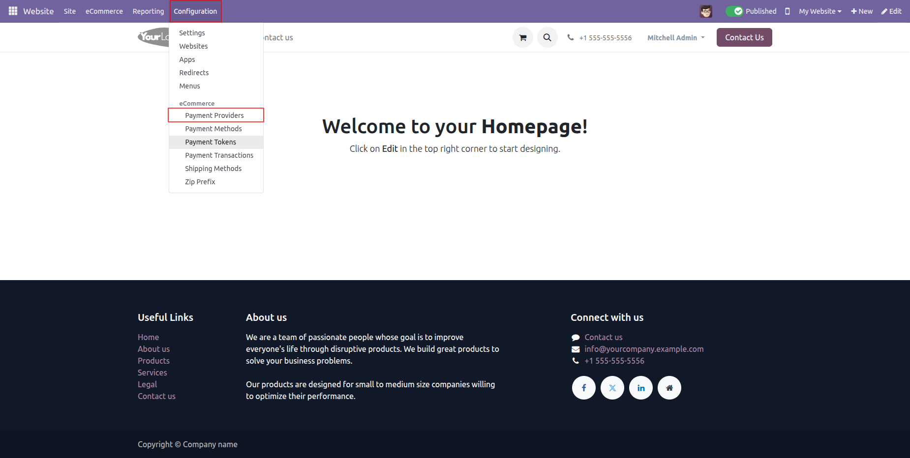 Go to Website -> Configuration -> Payment Providers to access Paymob settings.