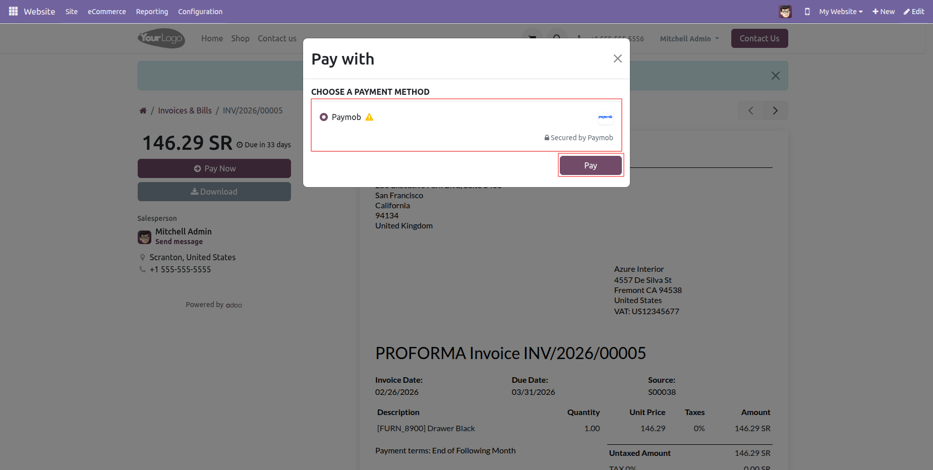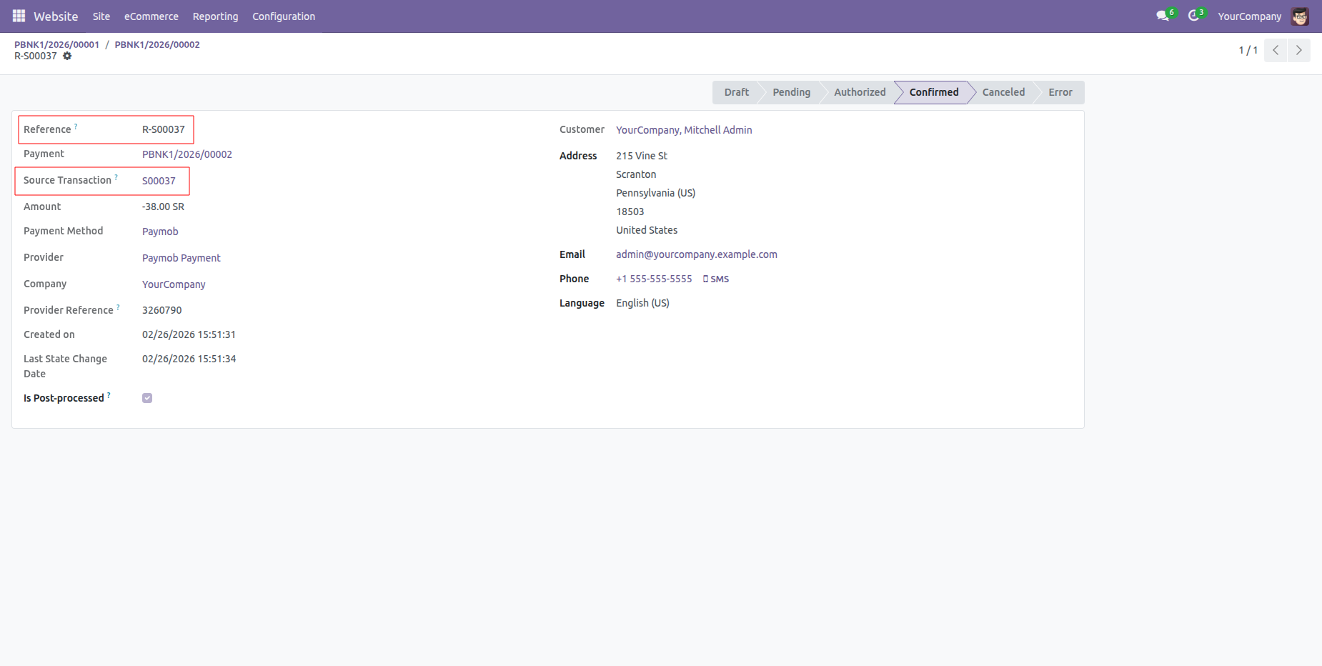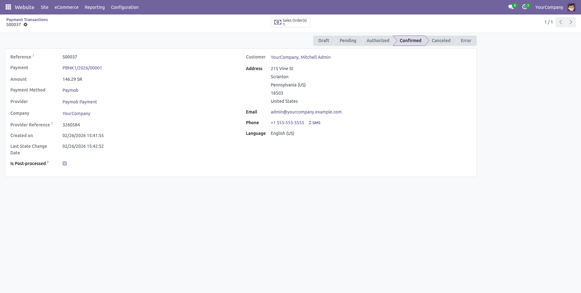 Maintain a transaction history in Odoo for all payments processed through Paymob, making payments straightforward.