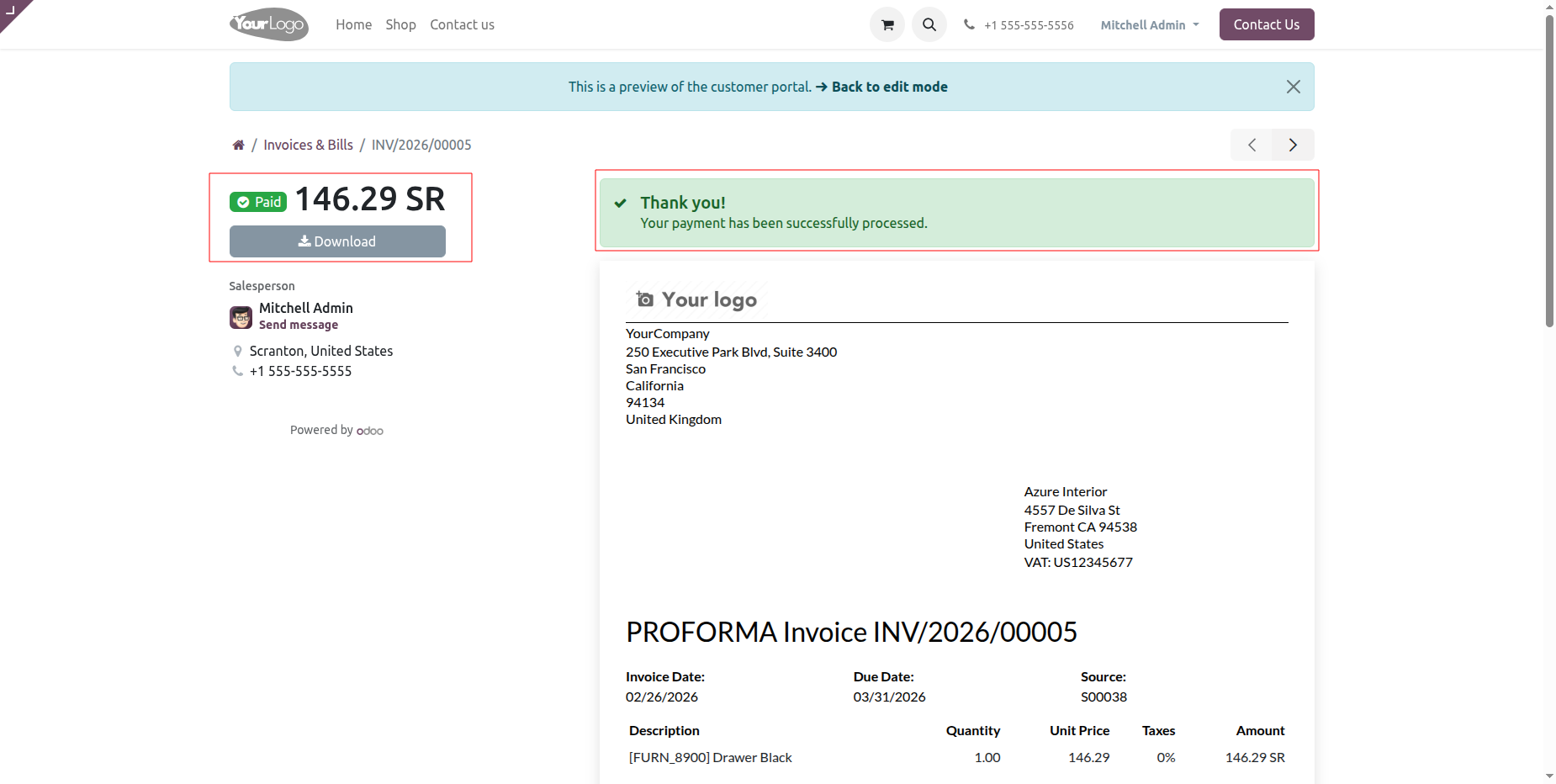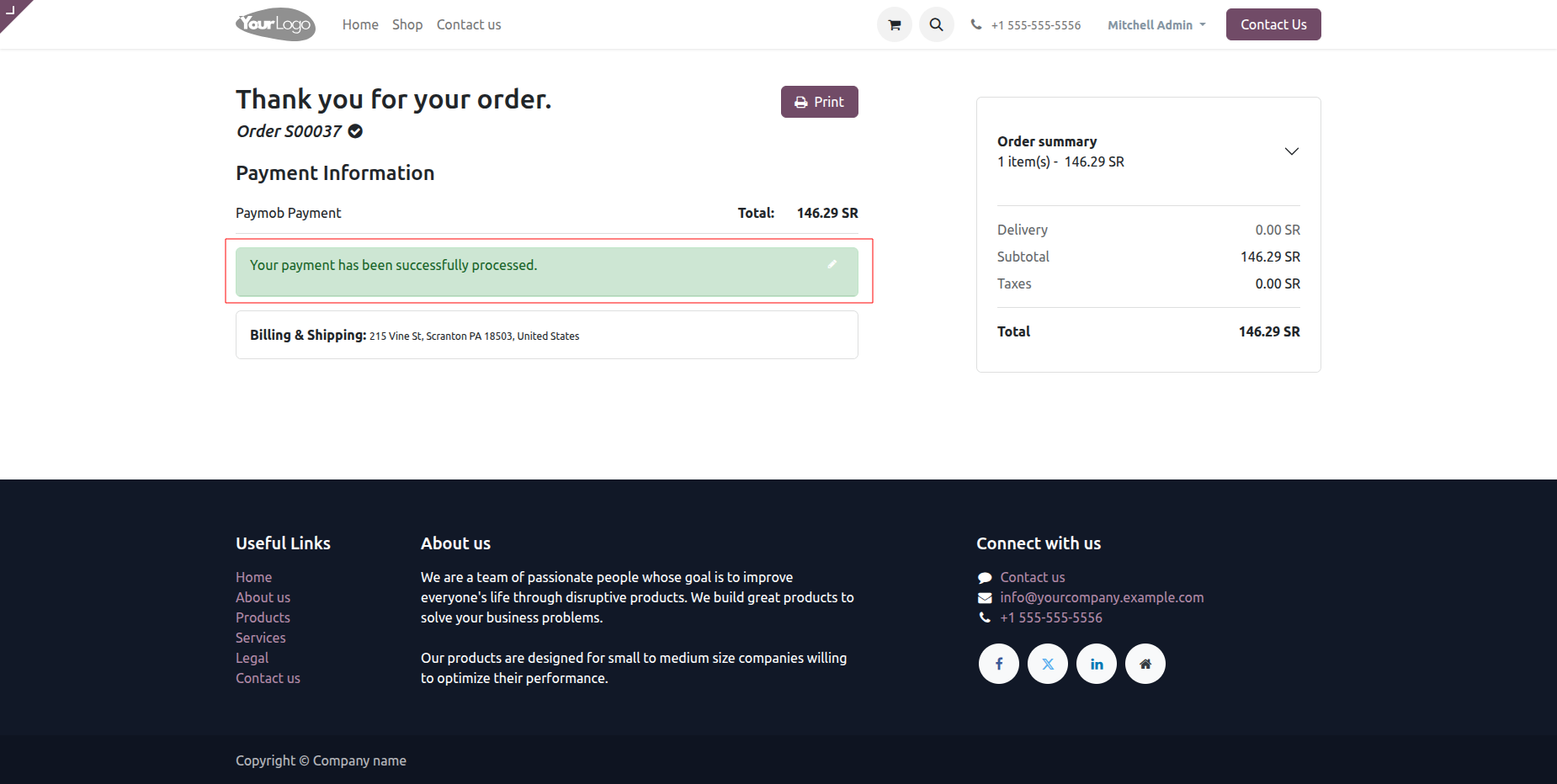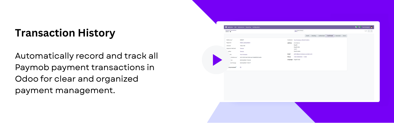 Maintain a transaction history in Odoo for all payments processed through Paymob, making payments straightforward.