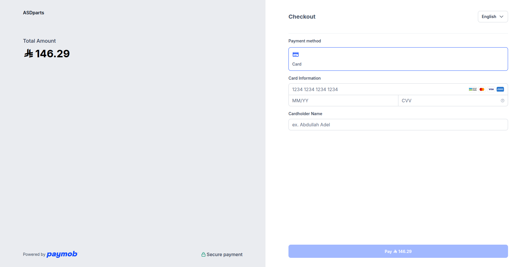 Allow customers to pay via credit/debit cards or any other payment methods supported by Paymob.