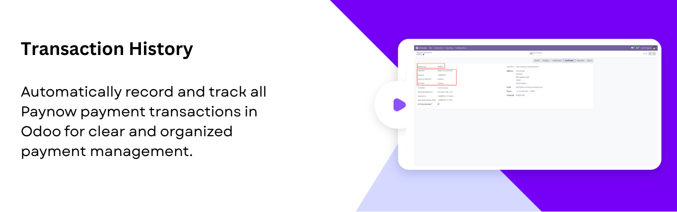 Maintain a transaction history in Odoo for all payments processed through Paynow, making payments straightforward.
