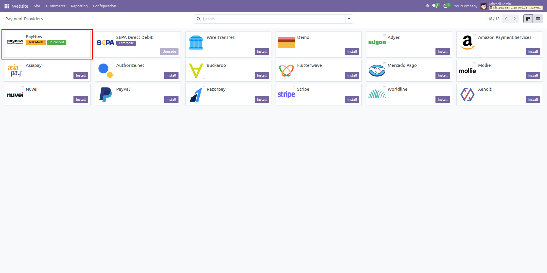 Enable Paynow Payments across multiple Odoo websites.