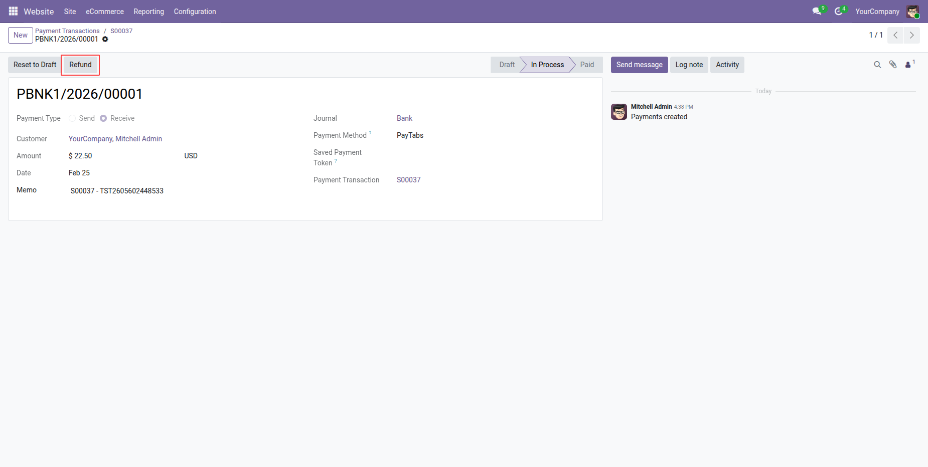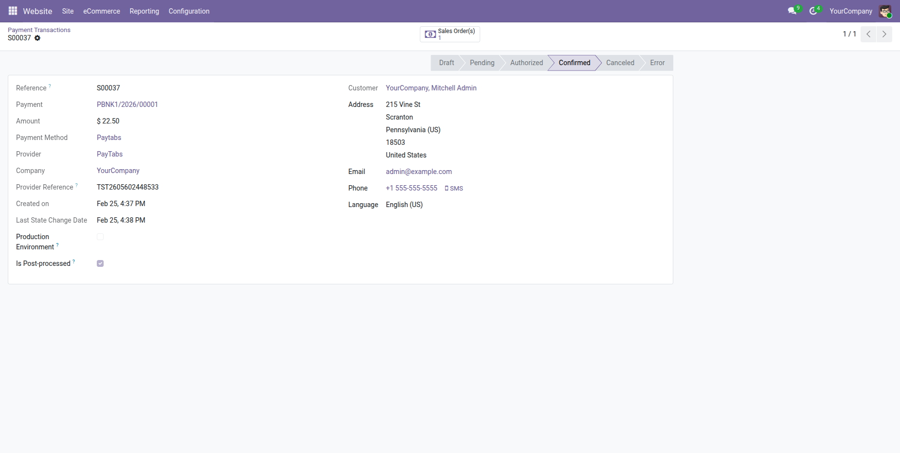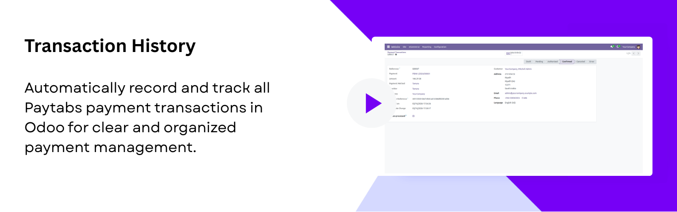 Maintain a transaction history in Odoo for all payments processed through Paytabs, making payments straightforward.