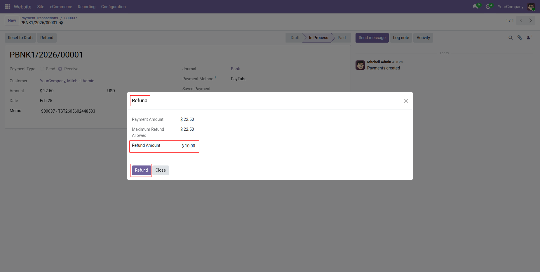 Process refunds directly from Odoo for any order paid through Paytabs. Ensuring smooth handling of cancellations.