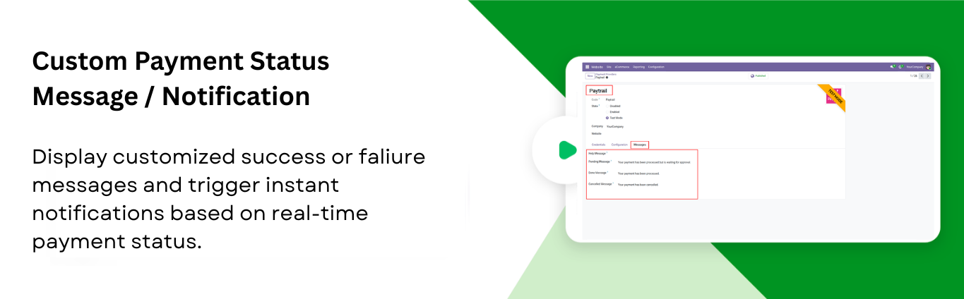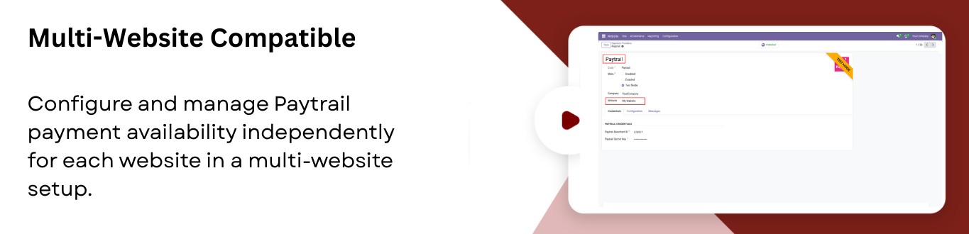 The Paytrail Payment Provider module seamlessly integrates your Odoo store with the Paytrail payment gateway, enabling fast and secure online payments through supported credit/debit cards and other Paytrail payment methods. It enhances the checkout experience with customizable payment status messages and automatic notifications, while offering full multi-website compatibility so each site can manage its own payment settings. The module also supports processing refunds directly from Odoo for smoother cancellations, maintains complete transaction history for easy tracking. Additionally, customers can securely pay through a dedicated self-service payment portal, ensuring a reliable and convenient payment experience for your e-commerce business.