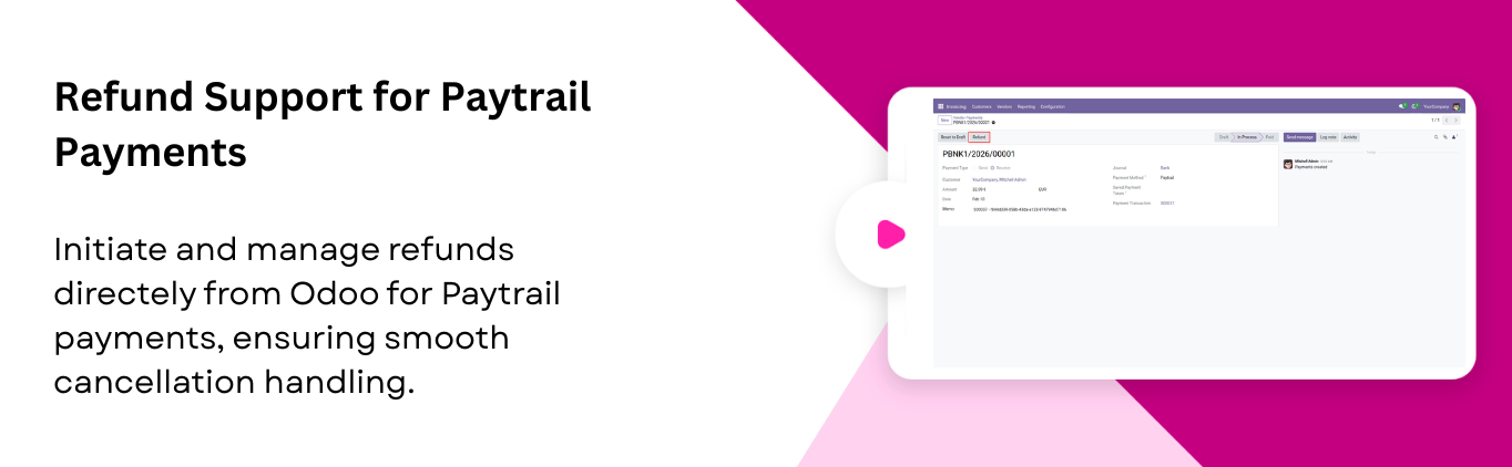 Process refunds directly from Odoo for any order paid through Paytrail. Ensuring smooth handling of cancellations.