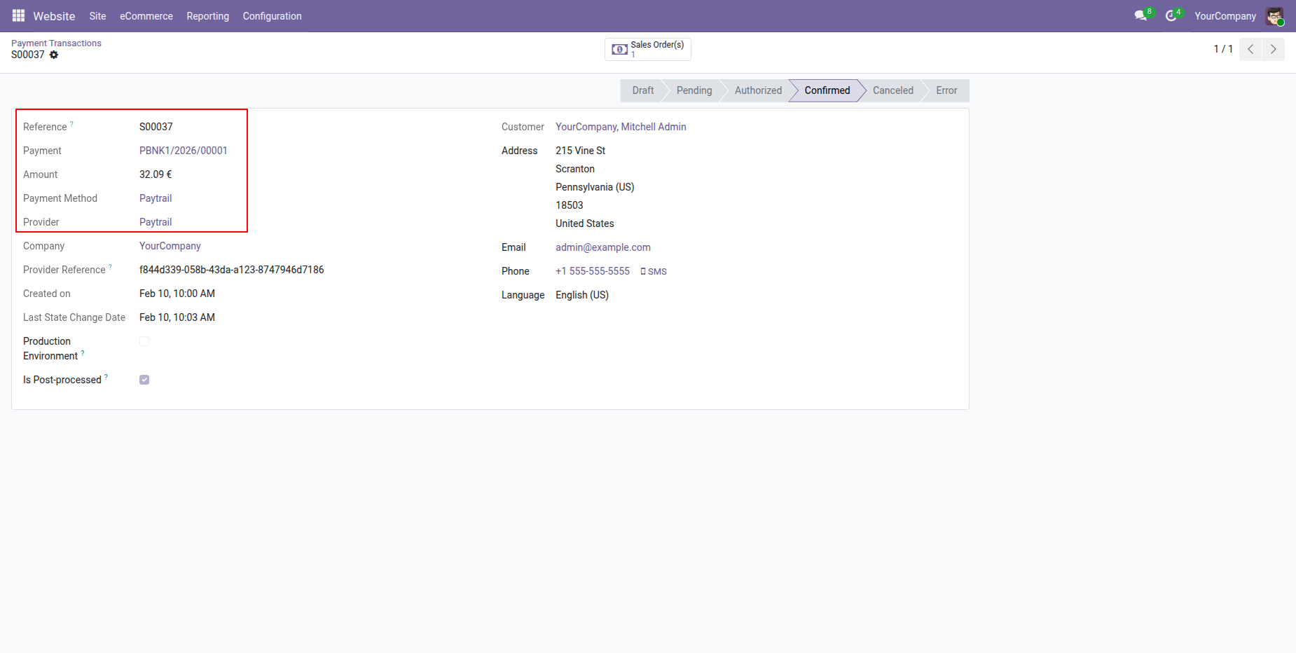 Maintain a transaction history in Odoo for all payments processed through Paytrail, making payments straightforward.