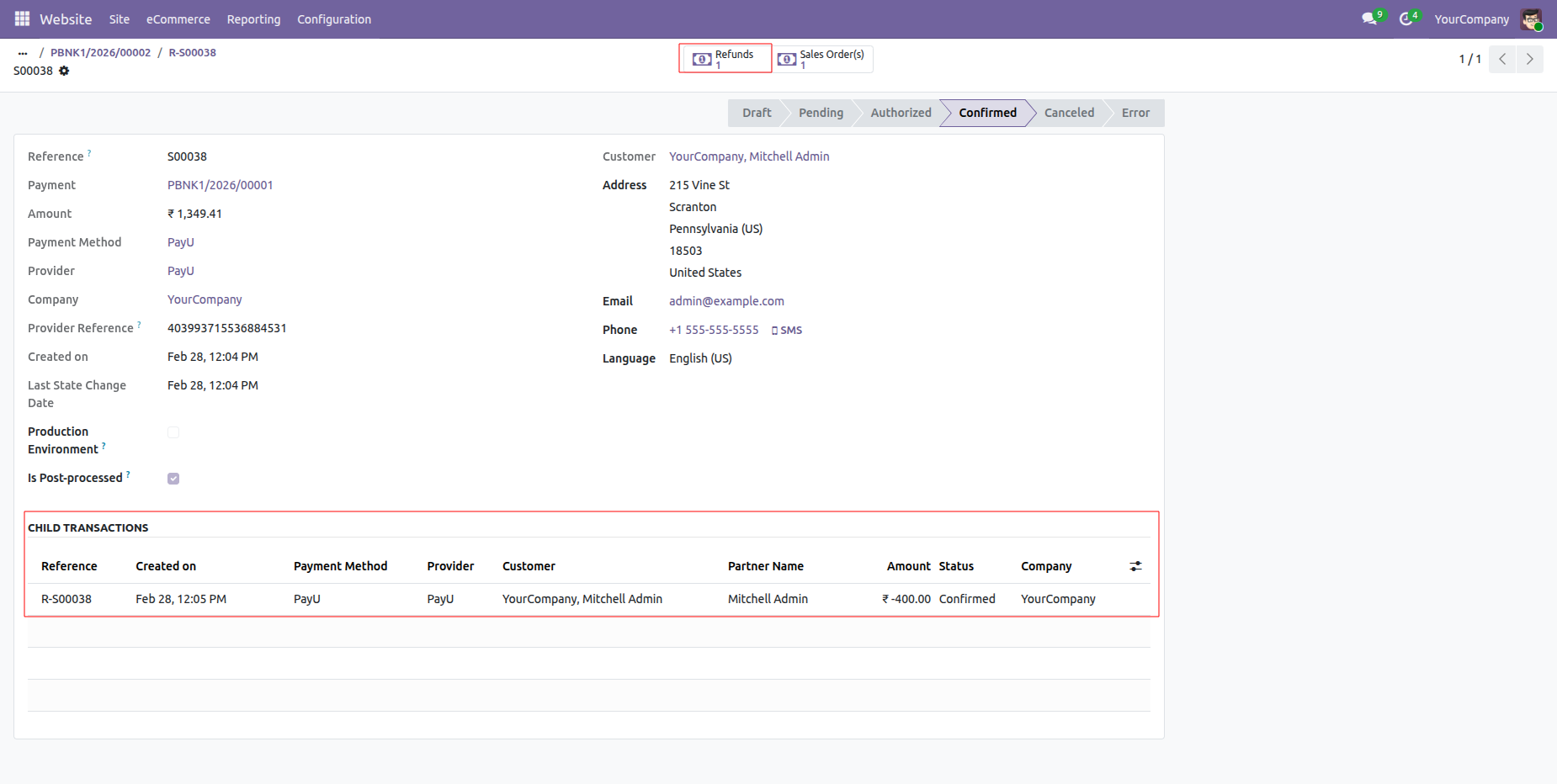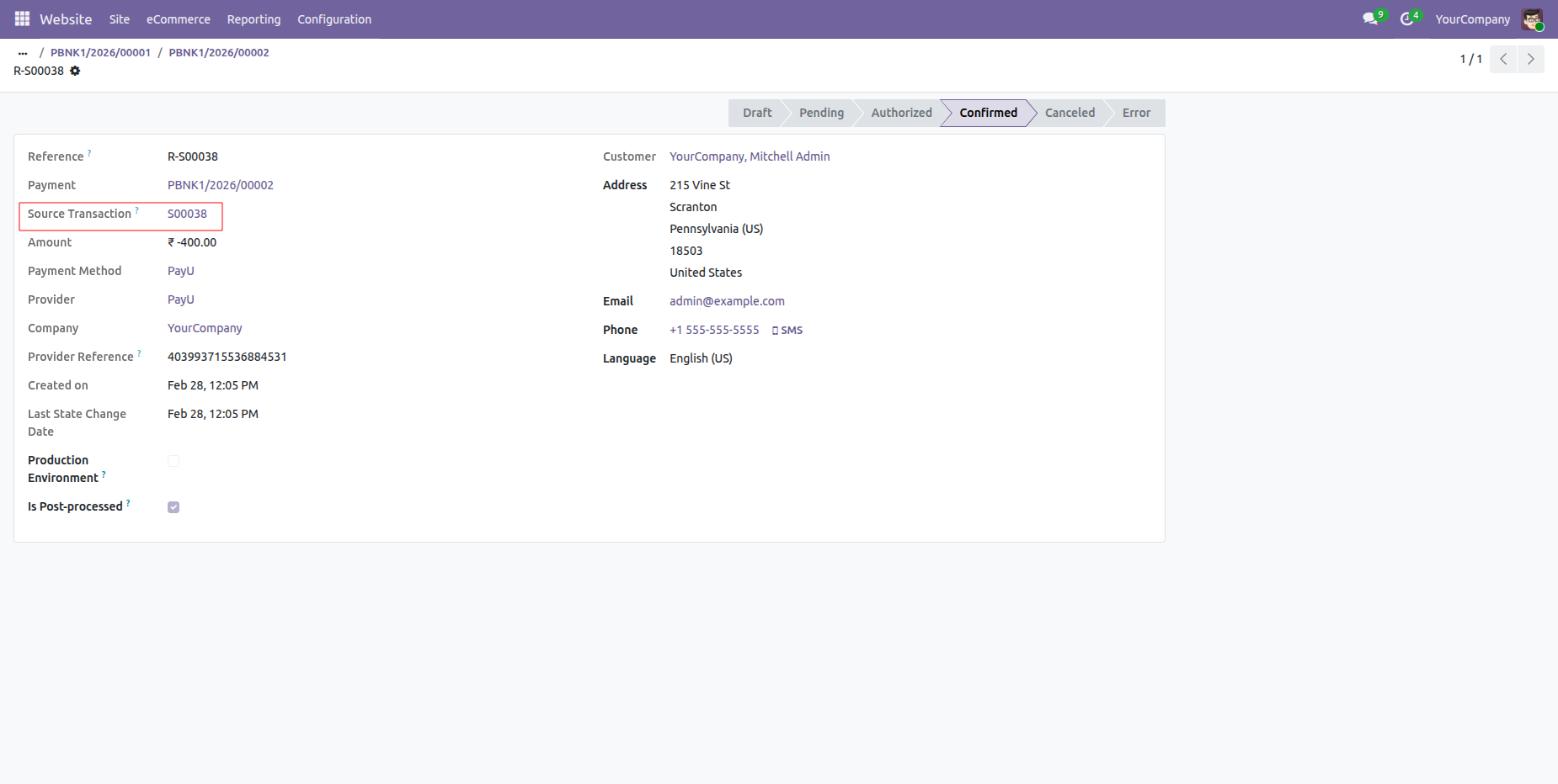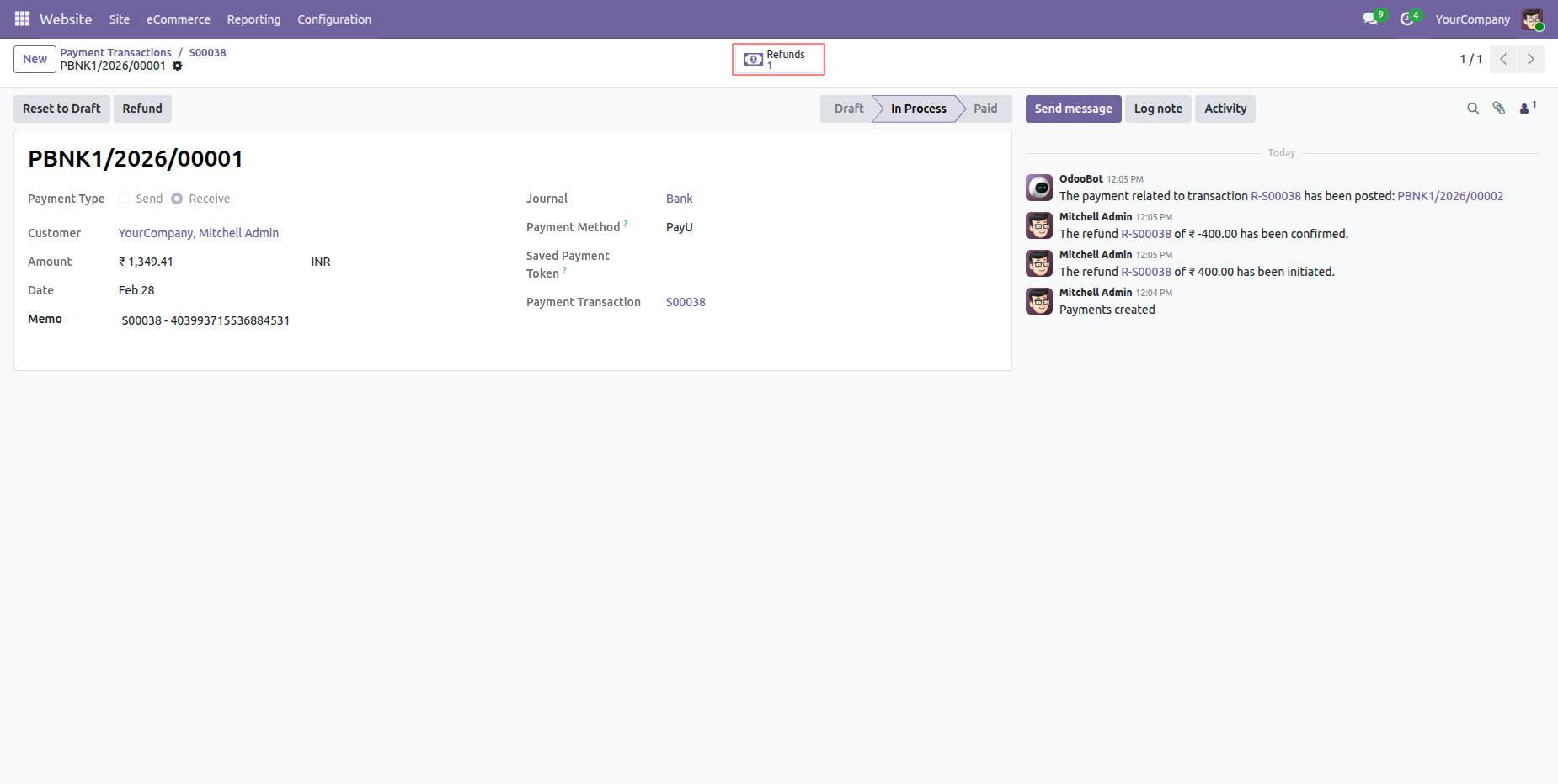 Maintain a transaction history in Odoo for all payments processed through PayU, making payments straightforward.