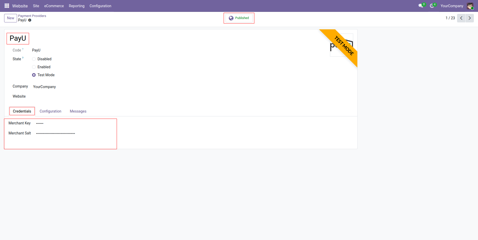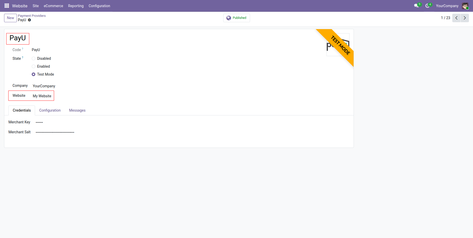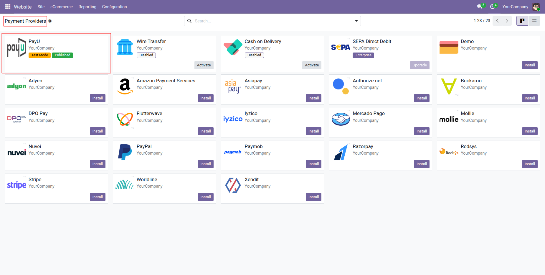 Go to Website -> Configuration -> Payment Providers to access PayU settings.