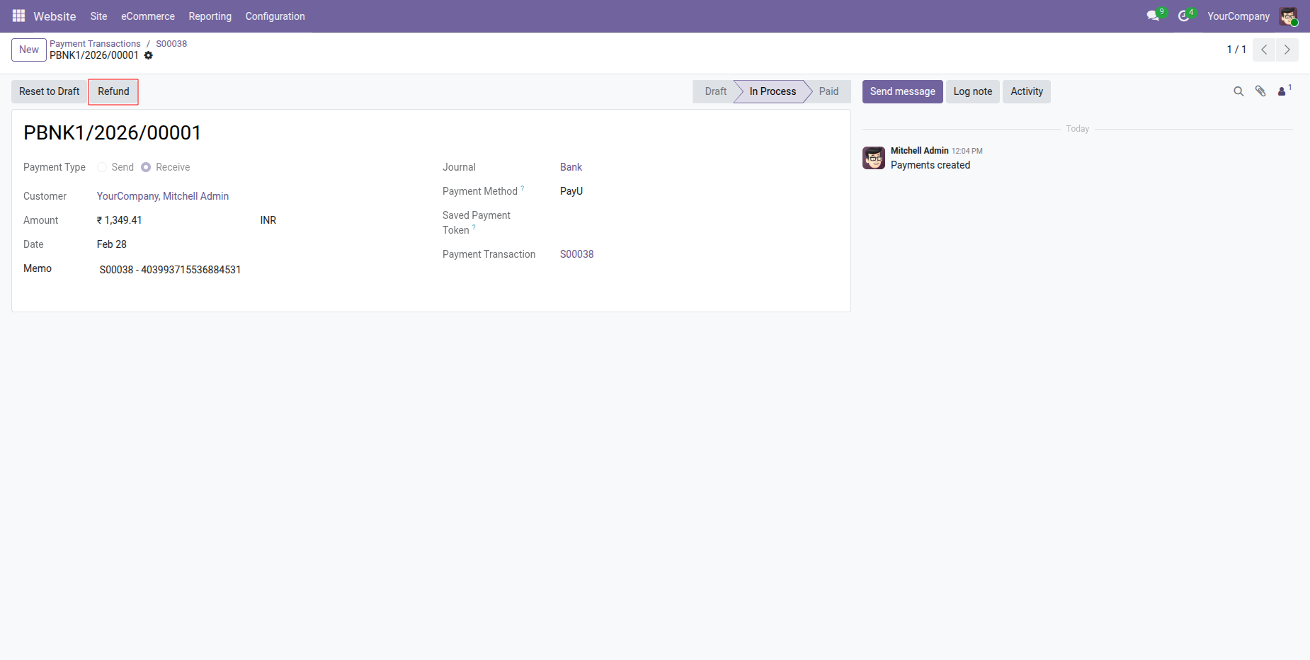 Maintain a transaction history in Odoo for all payments processed through PayU, making payments straightforward.