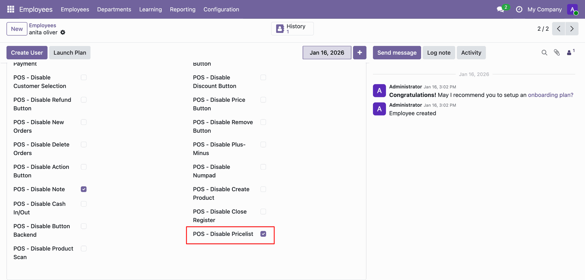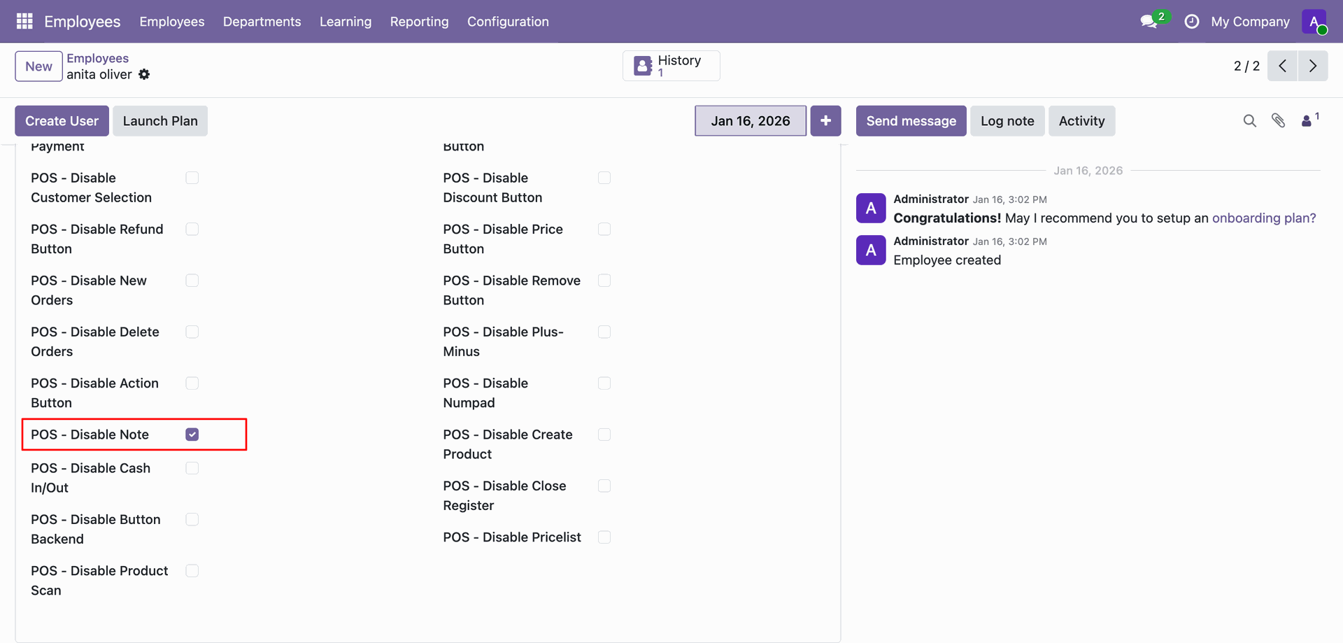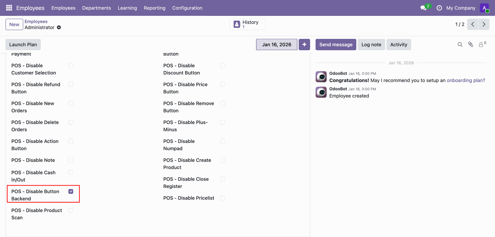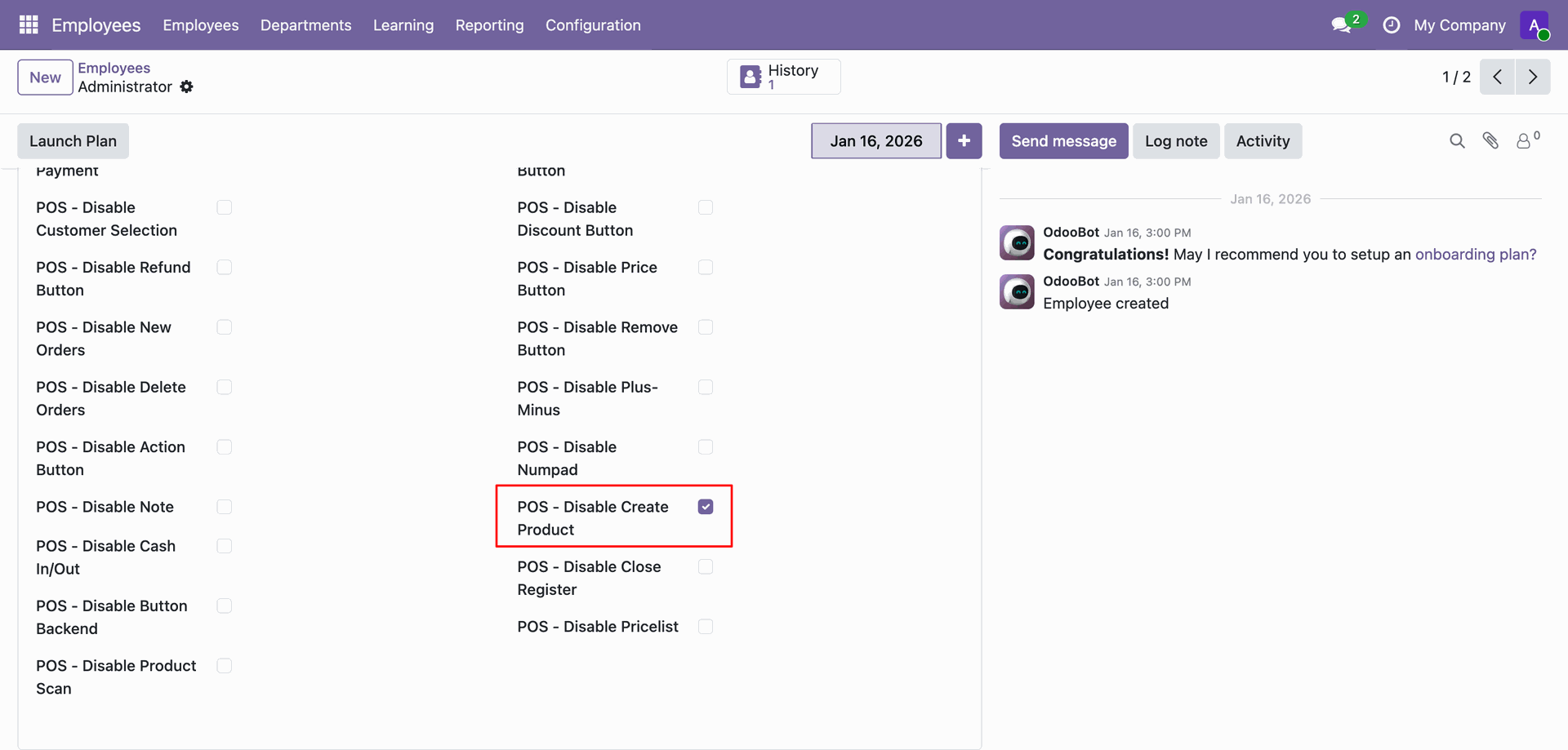 You can easily manage specific access for a particular cashier from the employee form view. Tick the tickbox to disable that access rights.