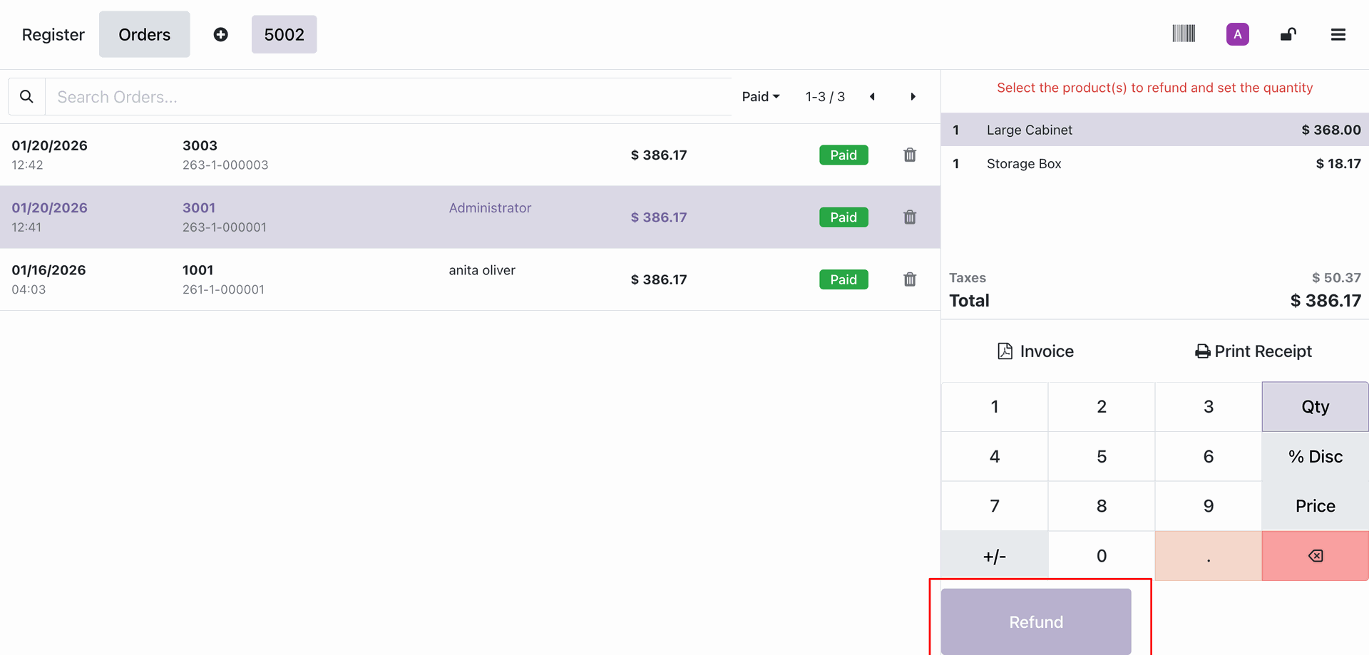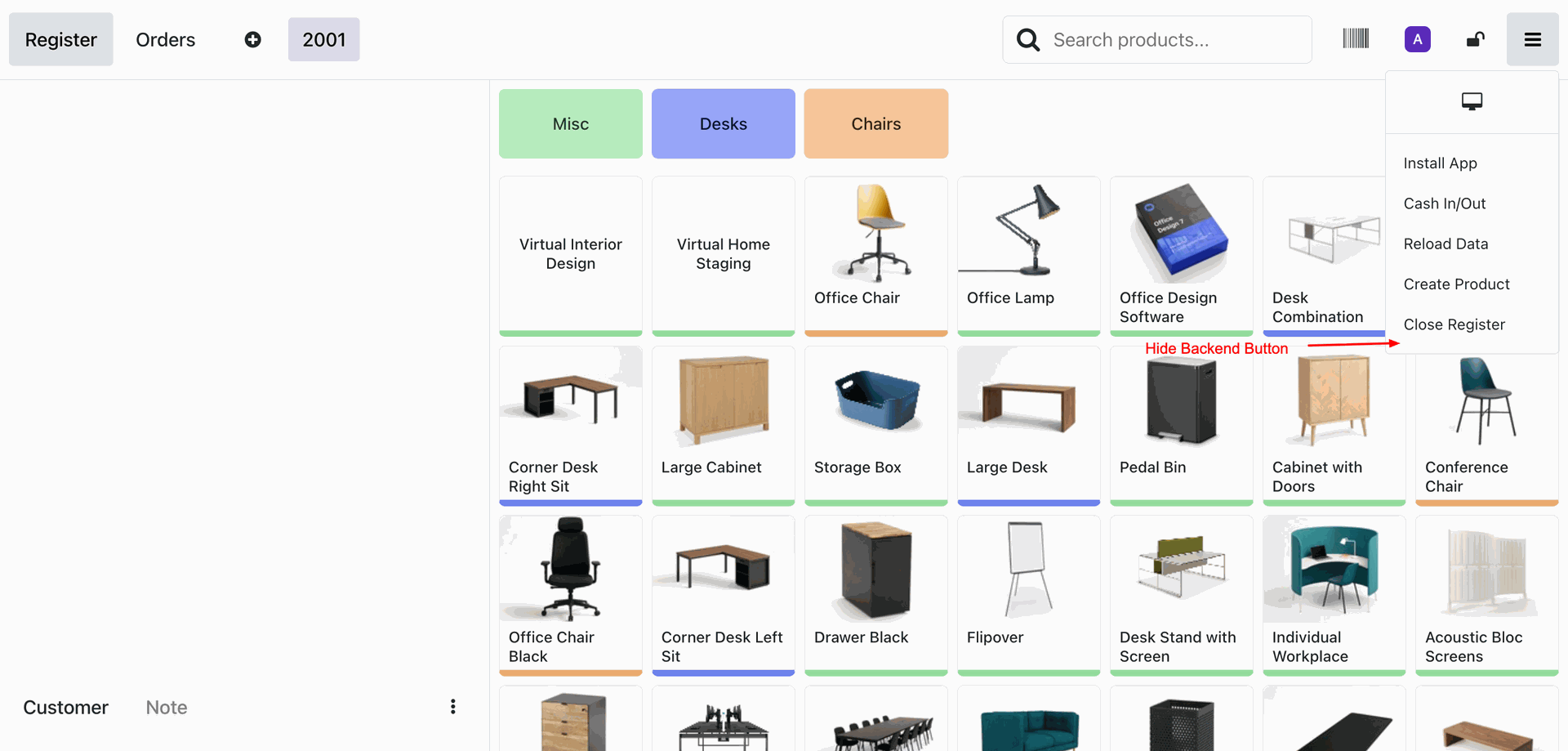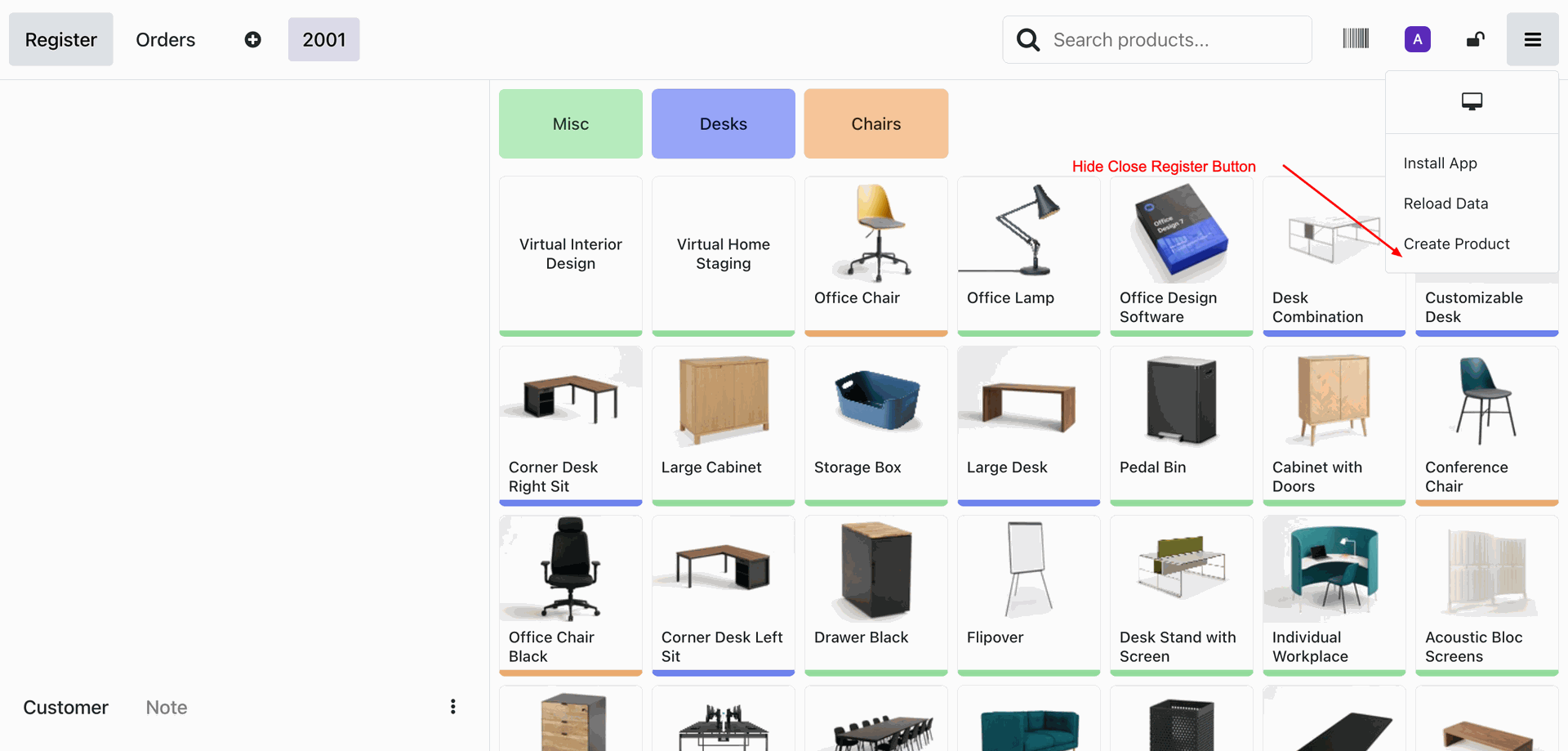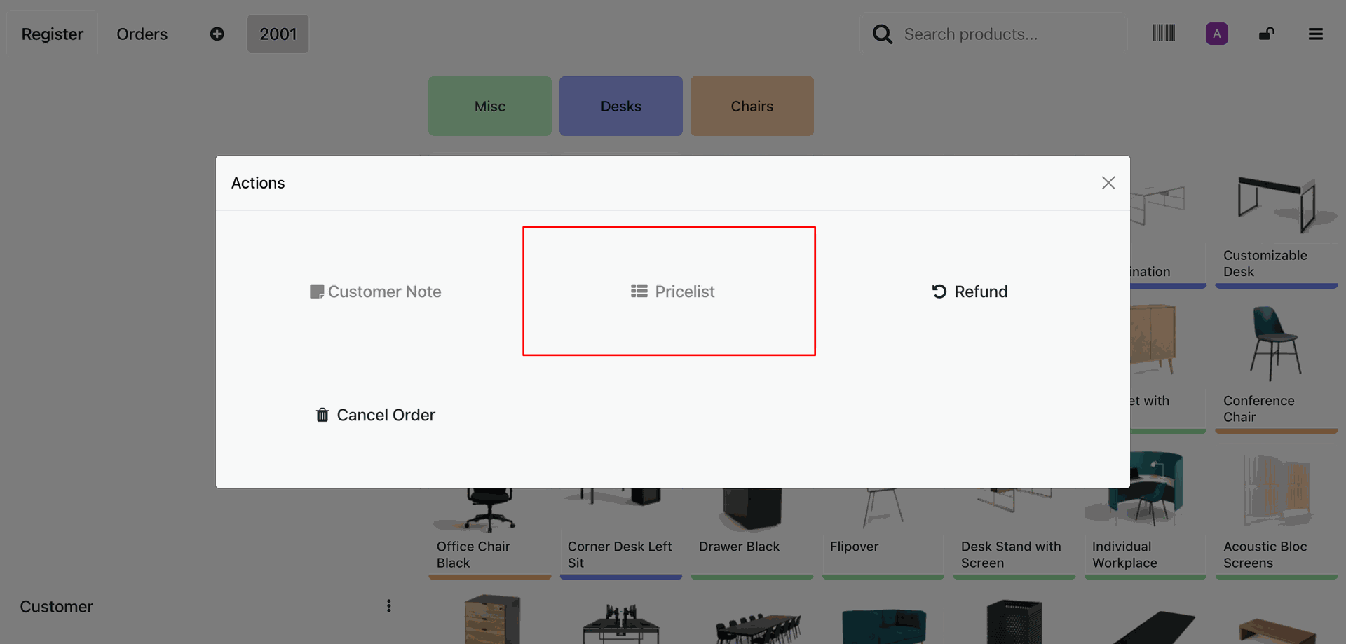 You can Enable/Disable Actions Such As Refund, Notes, Create Product, Cash In/Cash Out, Close Register, Backend Access, Pricelist, And Product Scan Options In POS.