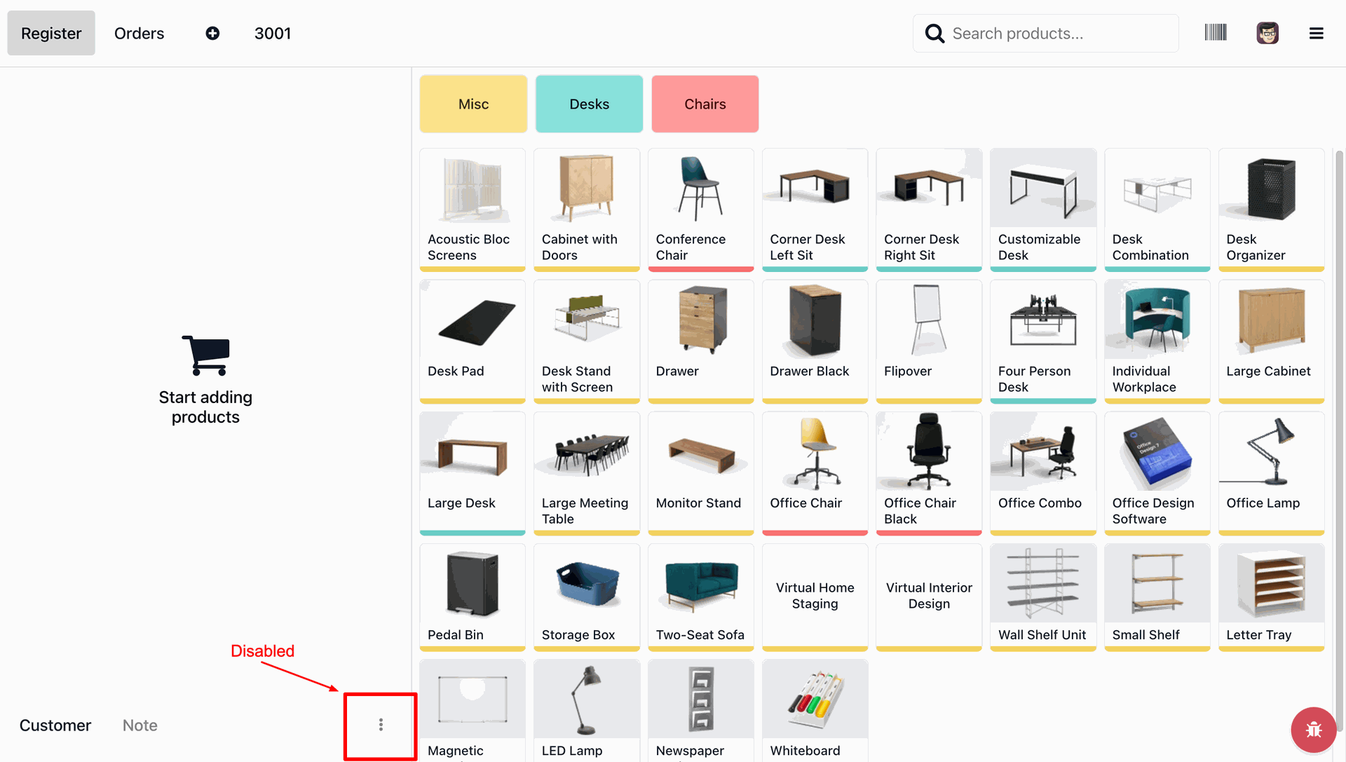 Tick the tickbox to disable the customer selection button.