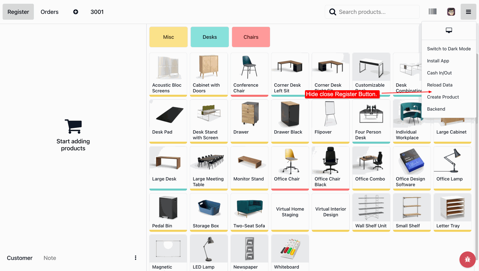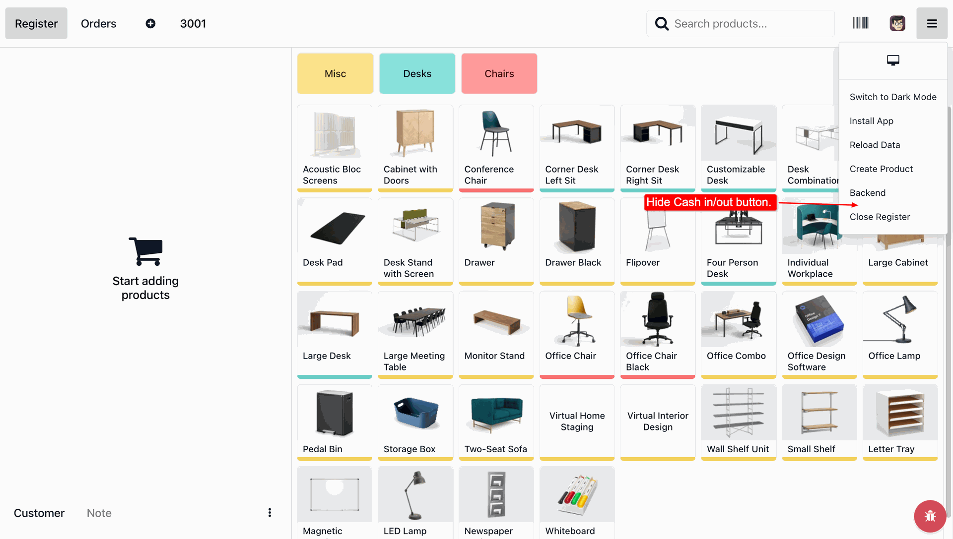 The Close Register option is now hidden.