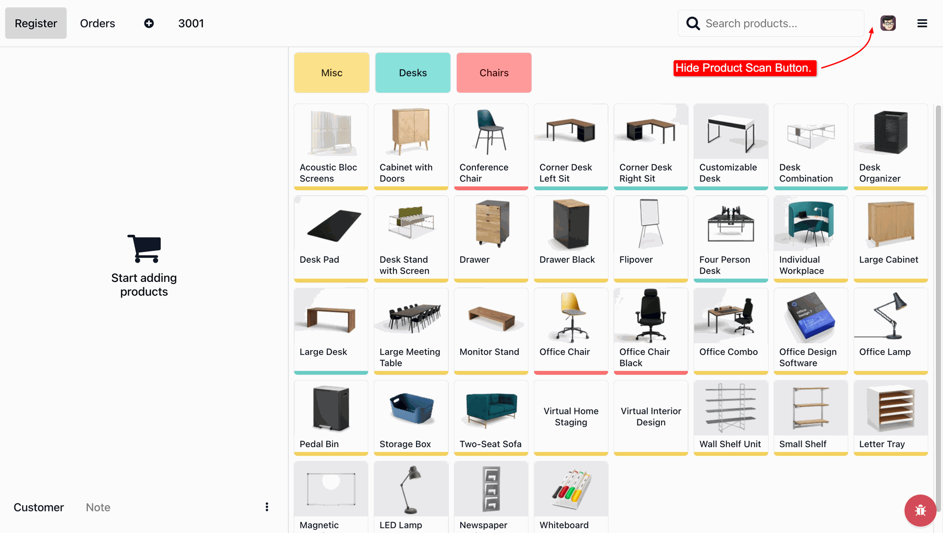 The Product Scan option is now hidden.