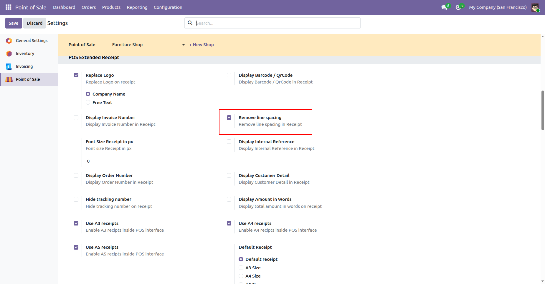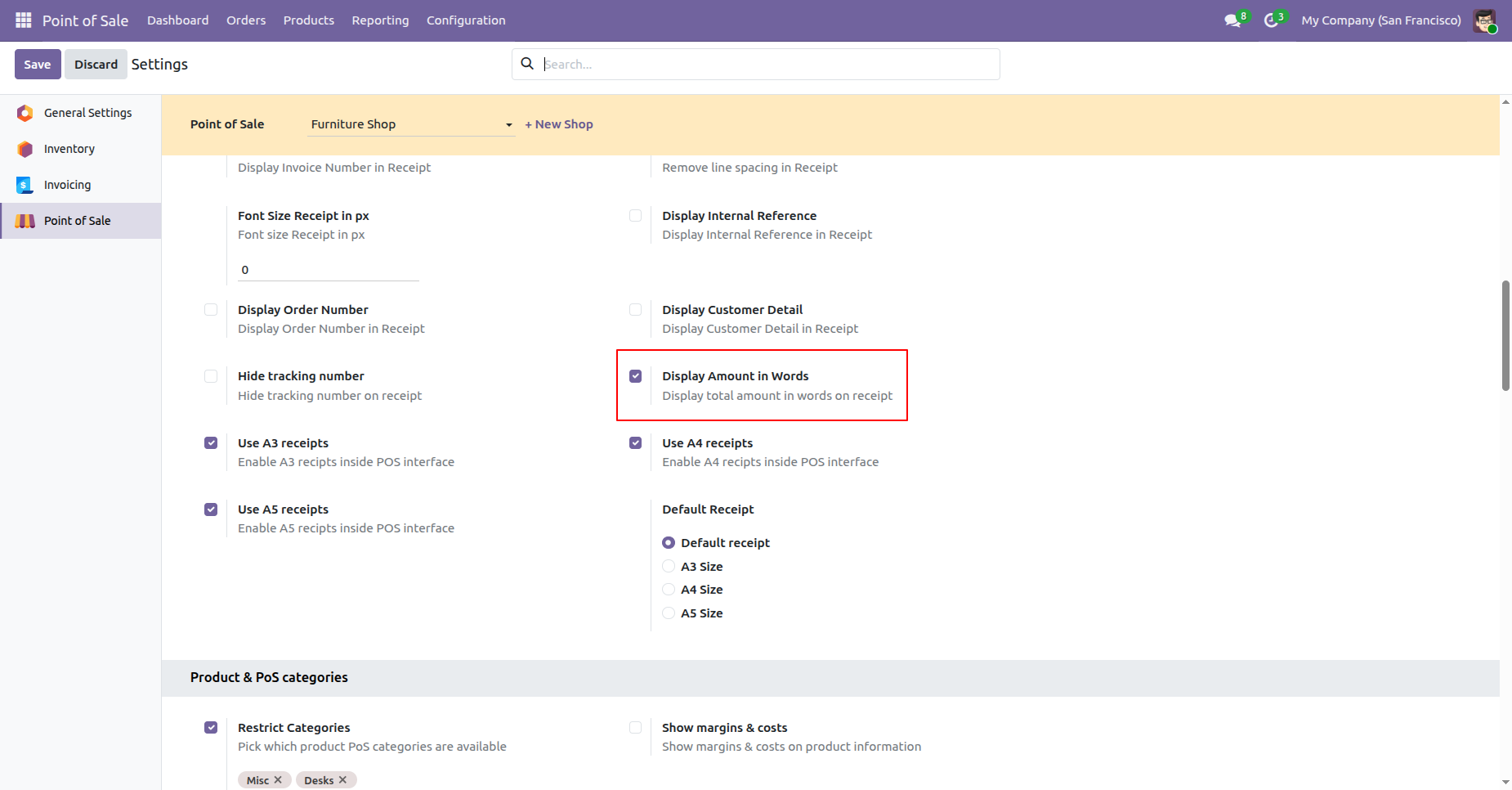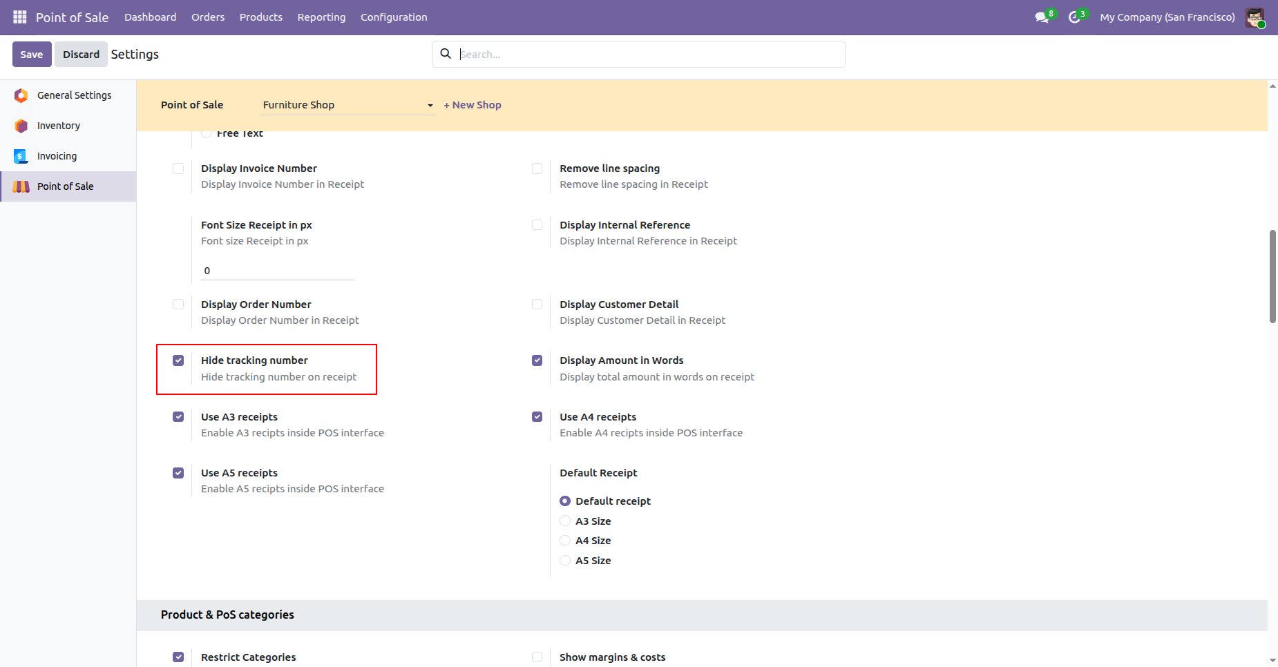 - You can display the invoice number in the receipt.