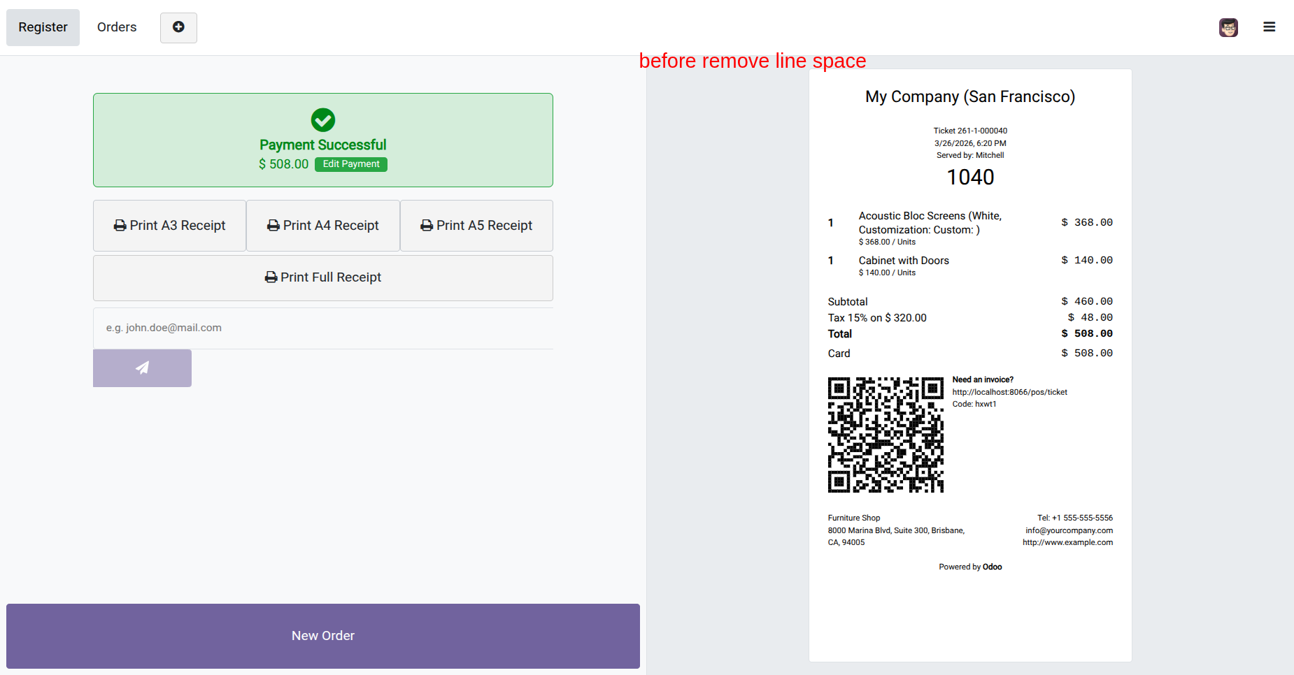 POS receipt with the QRcode.