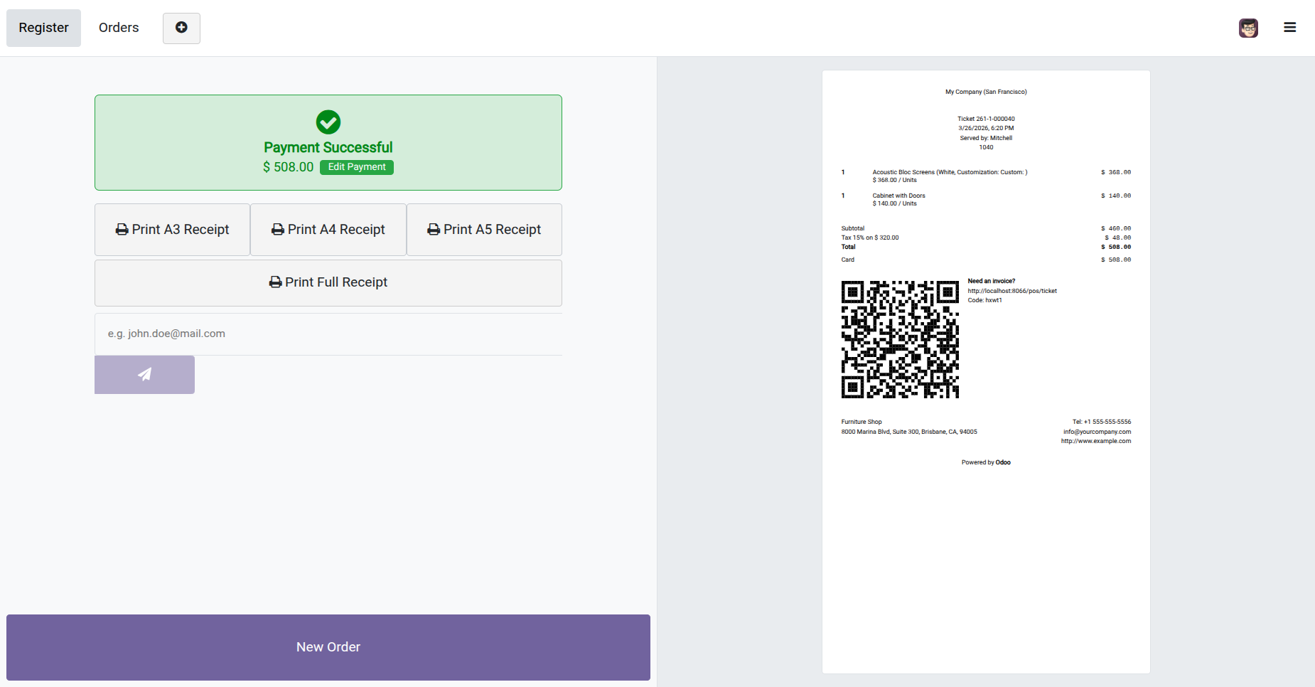 If this option is unticked then it does not display any customer details in the POS order receipt. - Print your receipts in various sizes, like A3, A4, and A5 options.
