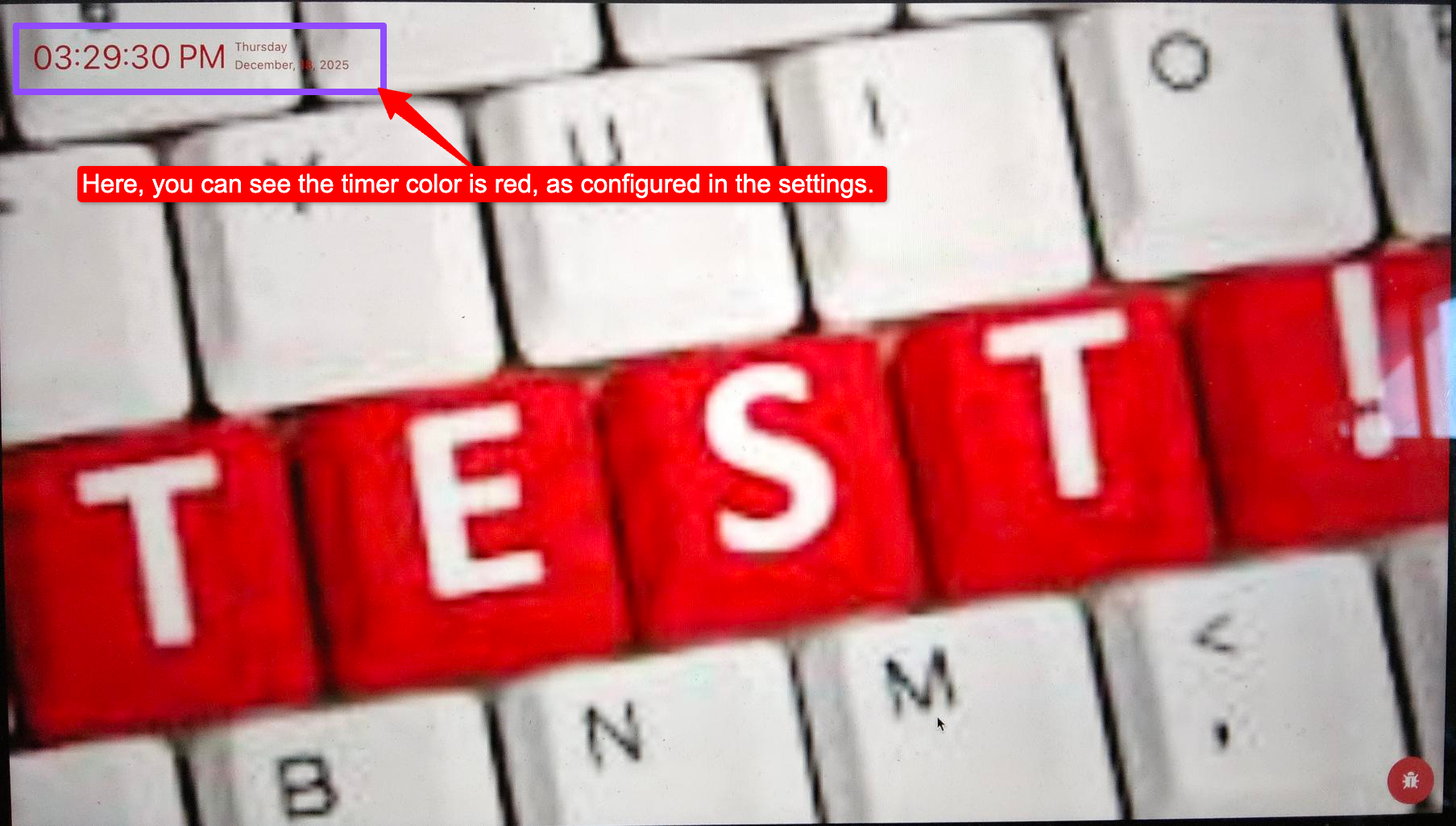 Here, you can see the timer color is red, as configured in the settings.