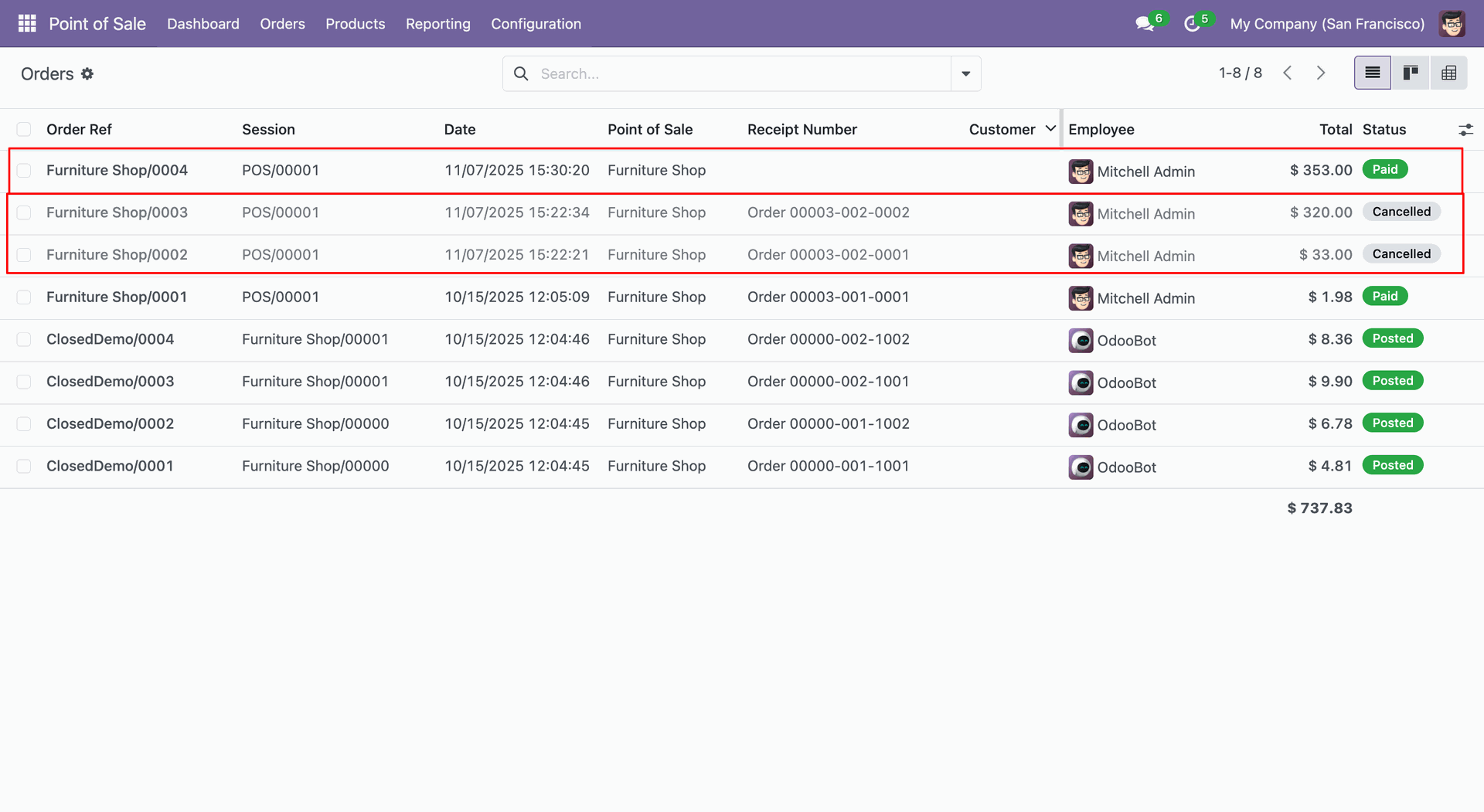 Here, you can see that the selected orders are cancelled and a new one has been created.