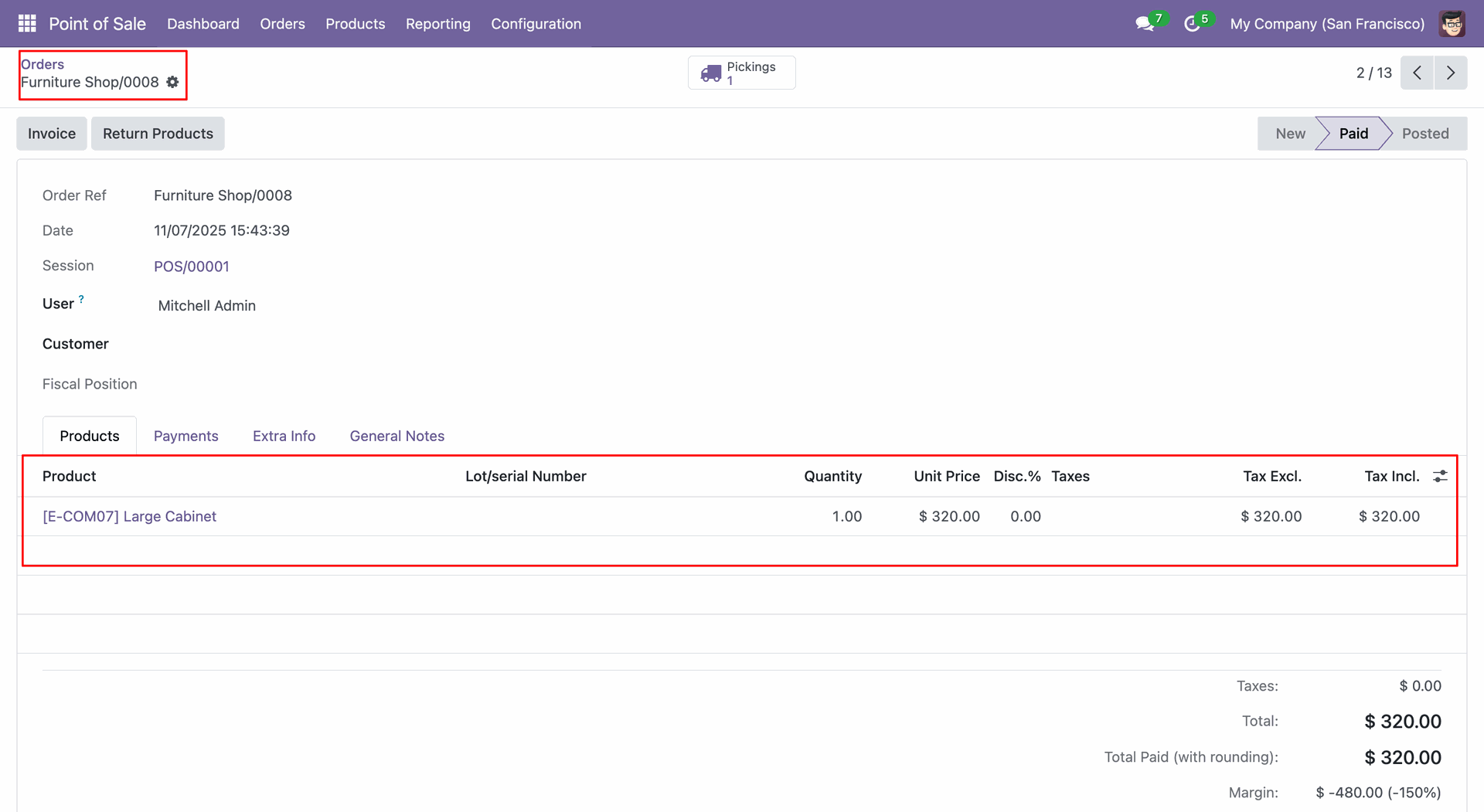 Create a POS order (0002).