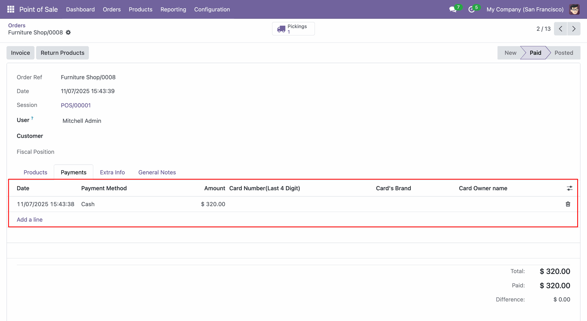Create a POS order (0005).