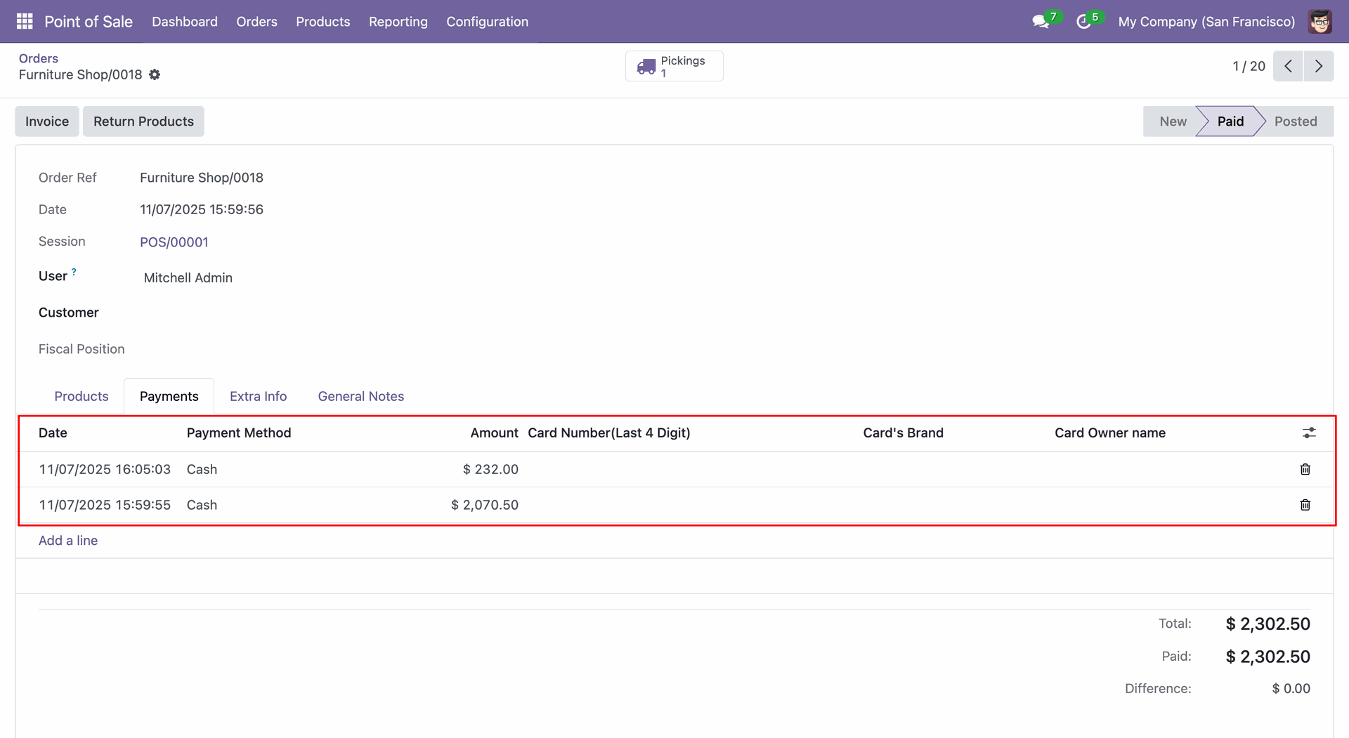 Create a new POS order with all products and payments, while original orders are automatically cancelled for audit and tracking.