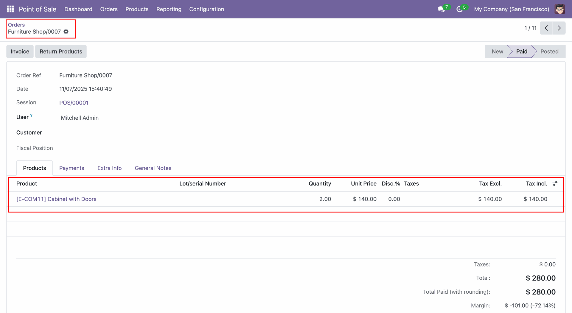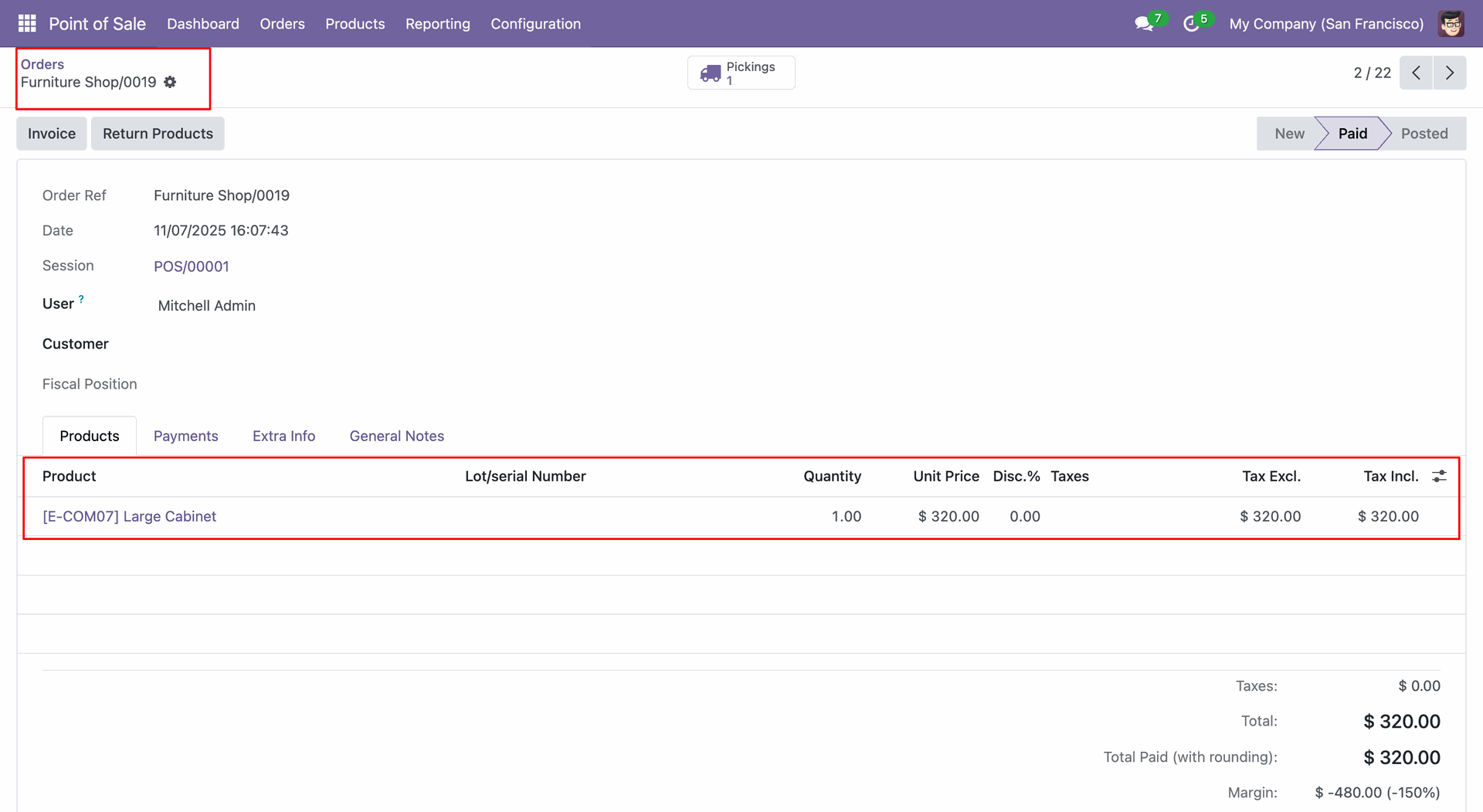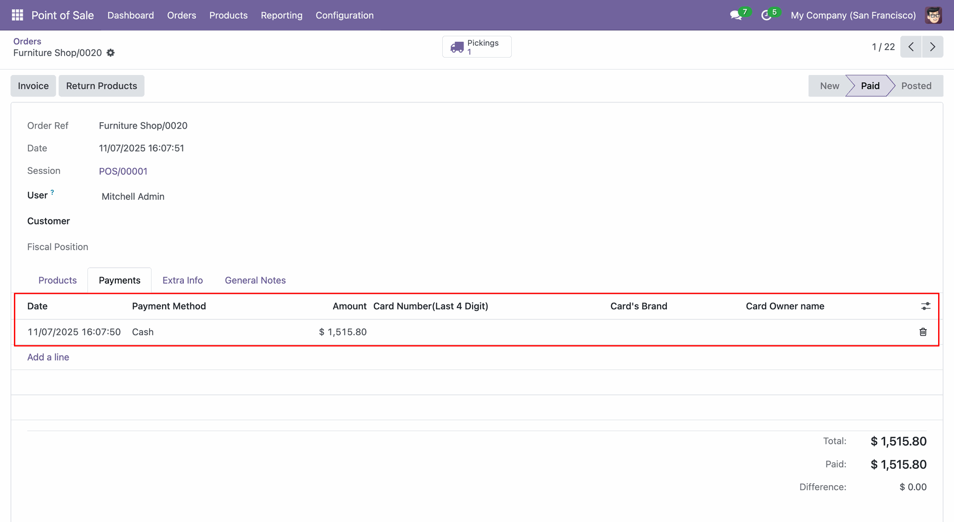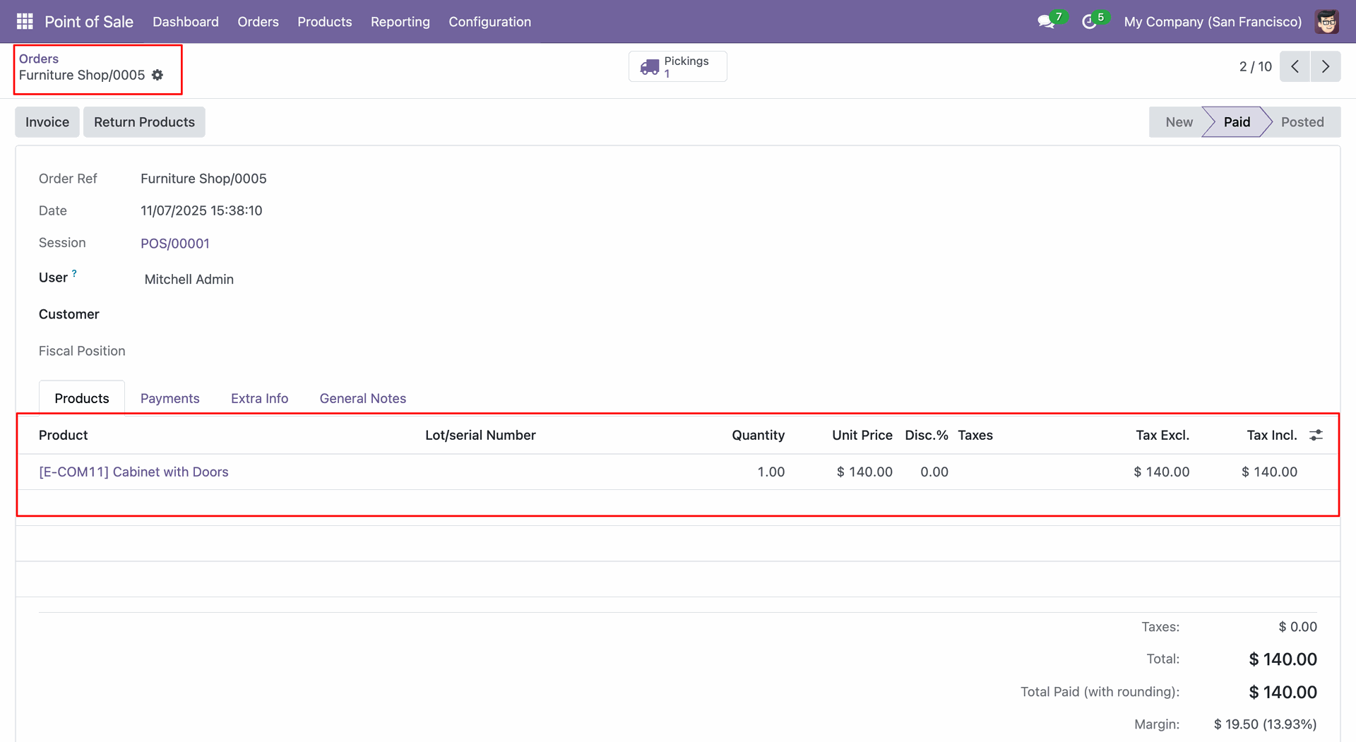 Create a POS order (0005).