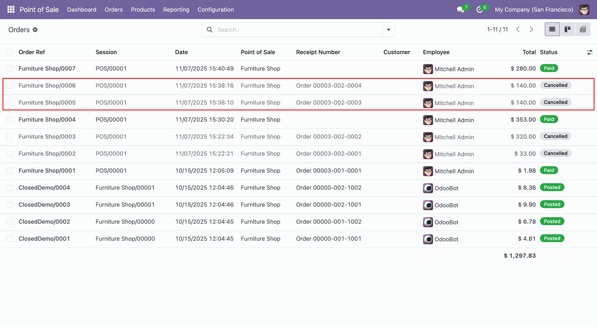 Here, you can see that the selected orders are cancelled and a new one has been created.