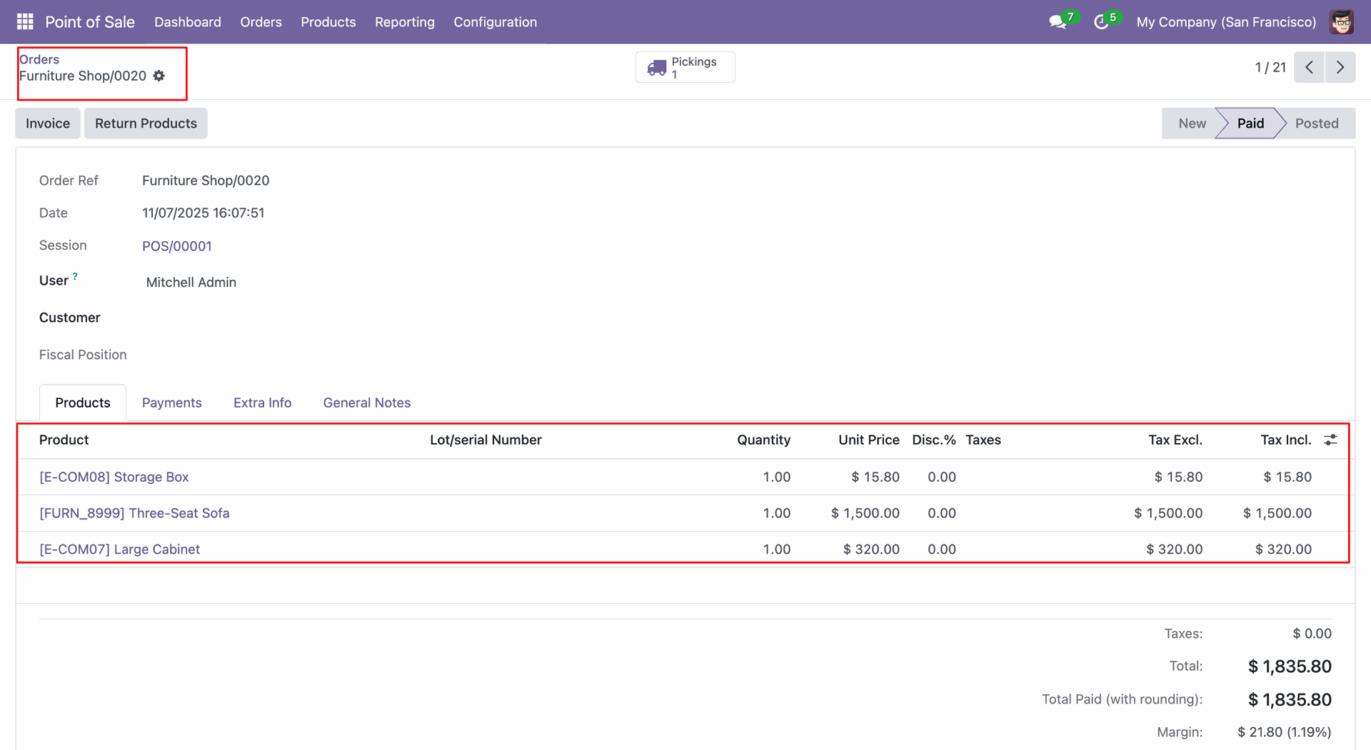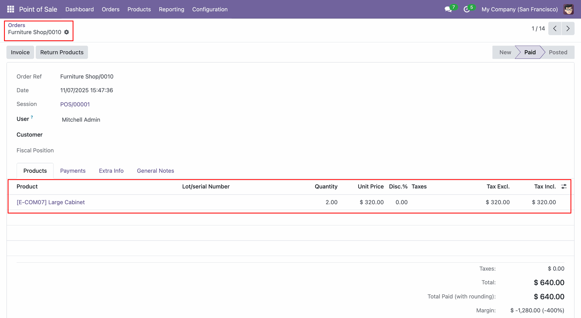 In the form view, you can see the products that were added from the merged orders.