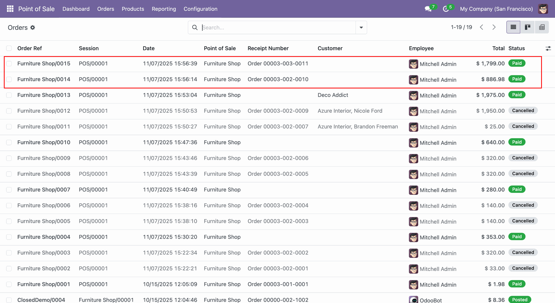Here, you can see that the order has been merged with 0020, and the 0019 order has been deleted.