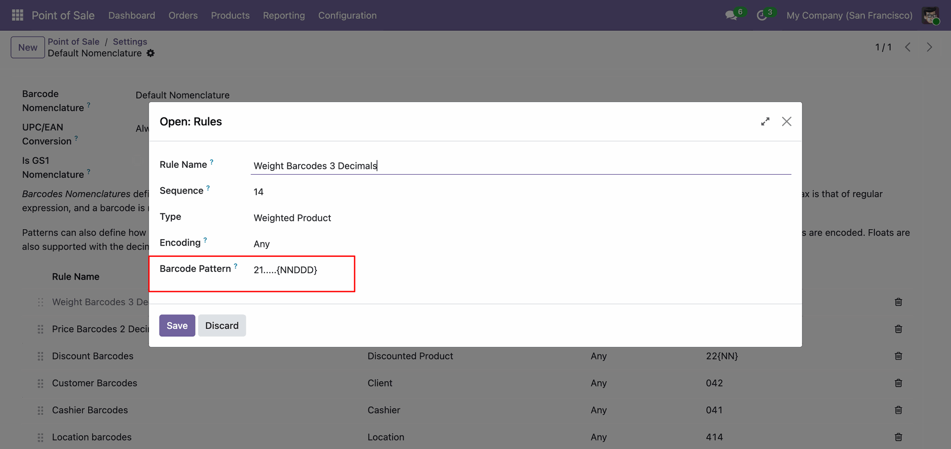 Enter the specific syntax in the Barcode Pattern field to define how the system decodes the structure of the scanned barcode.