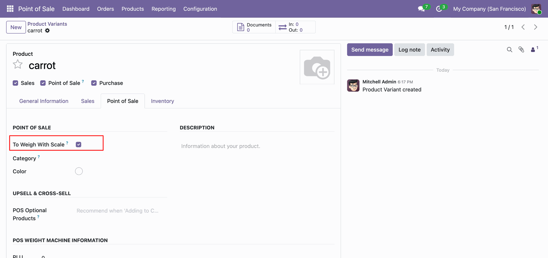Check the To Weigh With Scale box in the Point of Sale tab to ensure the product is weighted and priced accordingly at checkout.