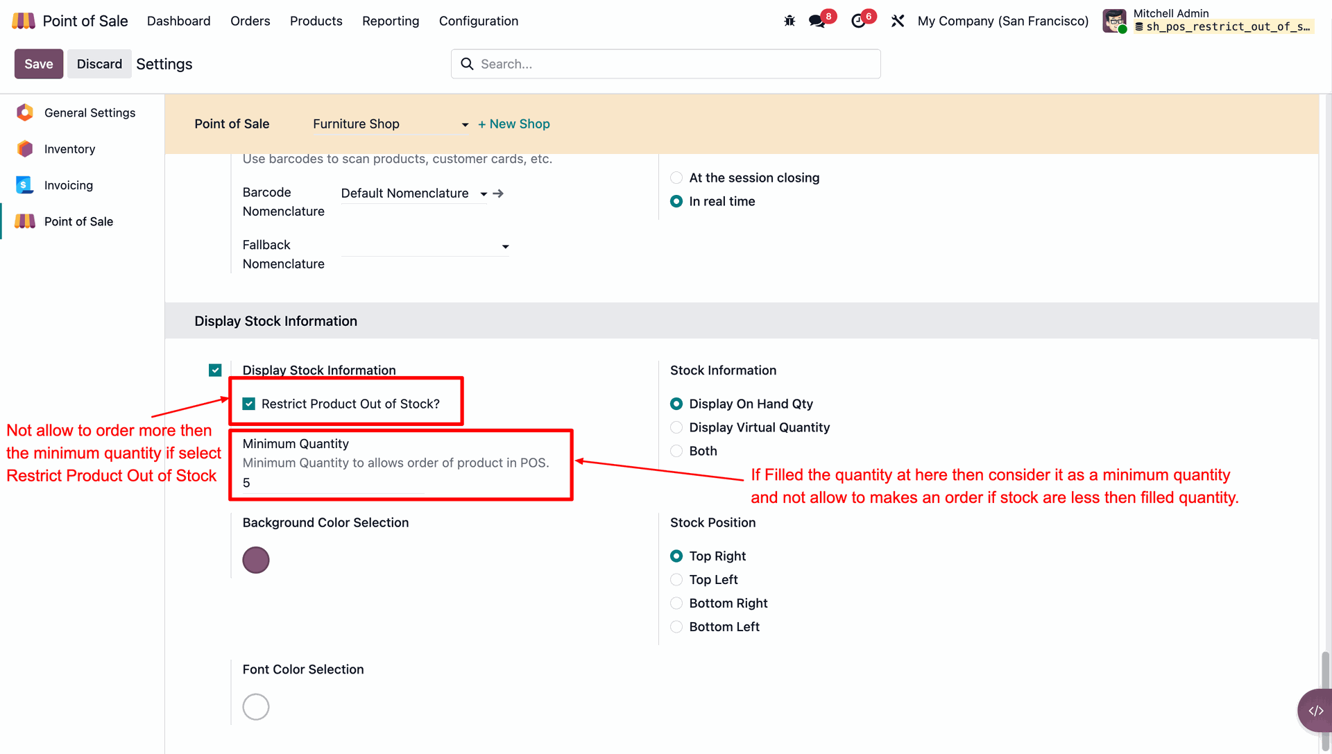 Dynamically restricts Point of Sale orders when the entered quantity exceeds the minimum quantity configured.